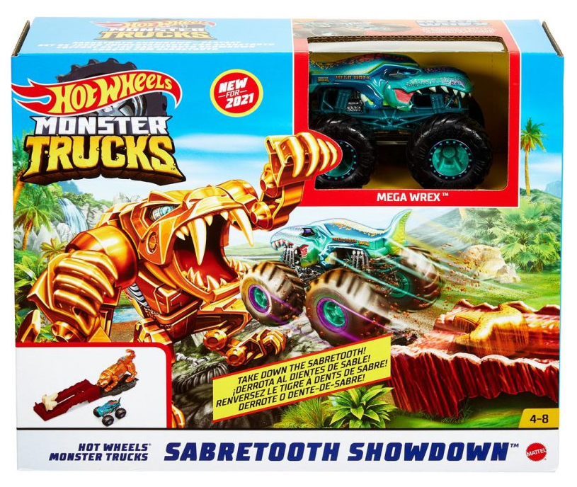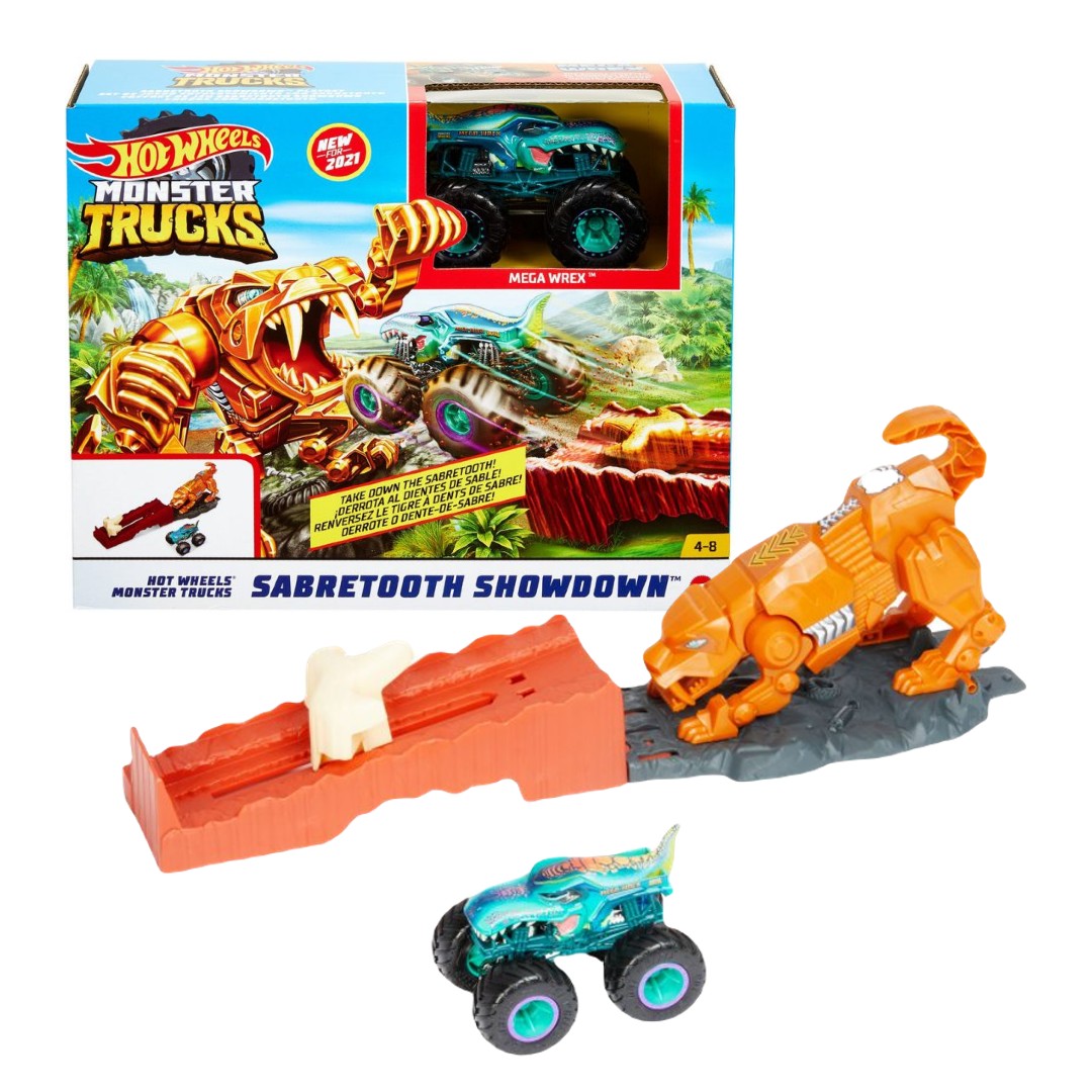 Hot Wheels Monster Trucks Starcie z tygrysem szablozębnym + Pojazd Mega Wrex GYL10