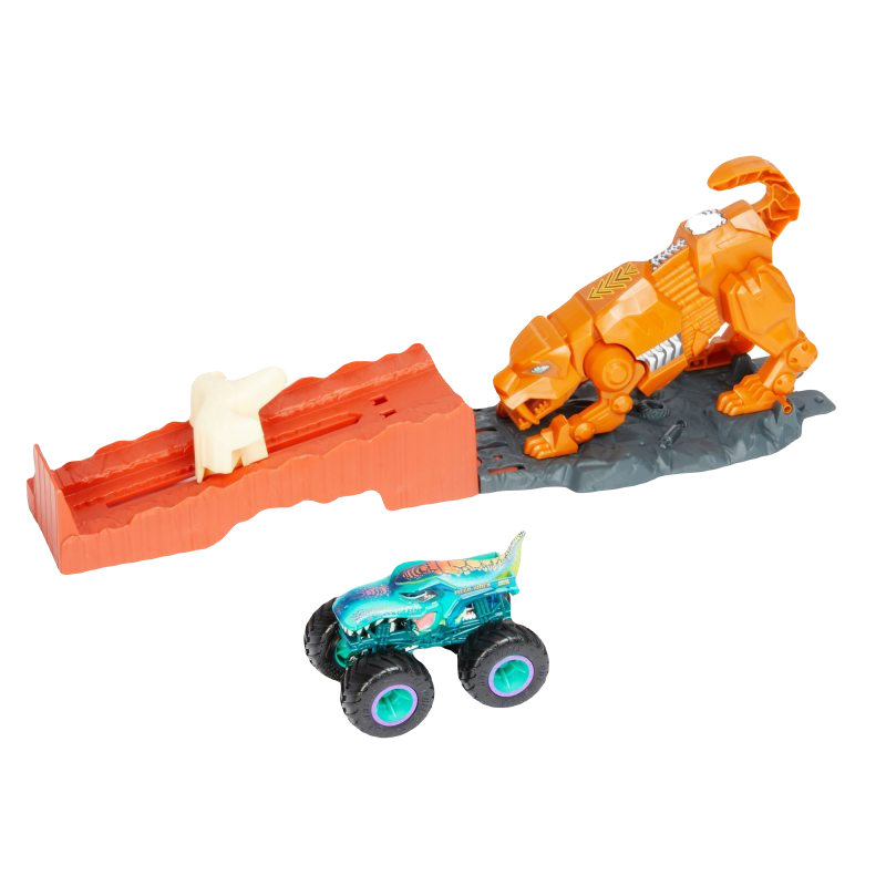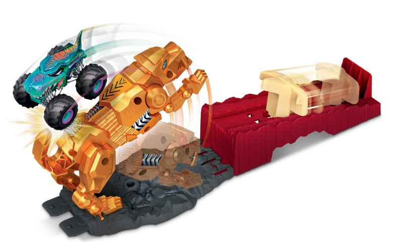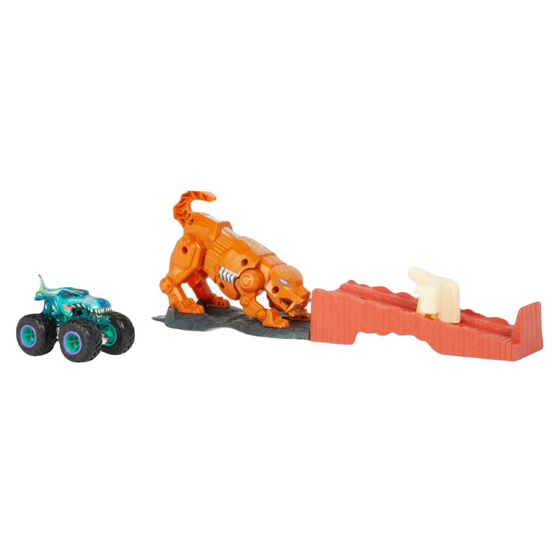 Czas na wielką przygodę z nowymi wyjątkowymi zestawami Hot Wheels Monster Track, które utrzymują w napięciu akcję i kraksy na wysokich obrotach. Ćwicz swoje umiejętności bohaterskimi Monster Truckami! Wystrzel pojazd w skali w sam środek akcji, by wygrać pojedynek z przeciwnikiem. Pokonaj potwory takie jak tygrys szablozębny czy ogromna ośmiornica, walcz z ogniem! Ruszaj ku przygodzie.