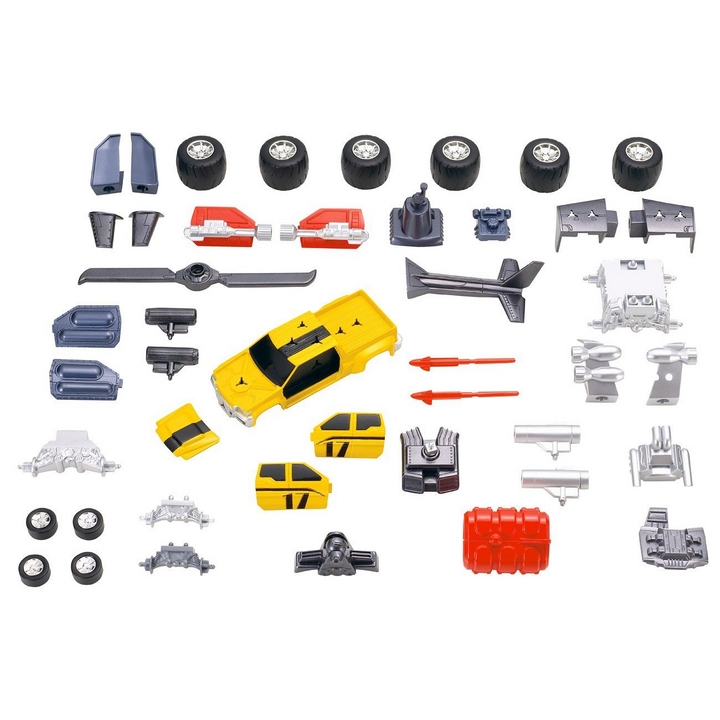 Czas na totalny tuning! Zmień zwykły samochód można zmienić w rewelacyjną terenówkę lub śmigłowiec. Zestaw zawiera 35 elementów, z których można złożyć cztery różne pojazdy. To ponad 200 różnych kombinacji. Elementy mocowane są na kliknięcie, dzięki czemu montowanie przebiega szybko i sprawnie. Każdy model ma bardzo realistyczne odwzorowane pojedyncze detale.