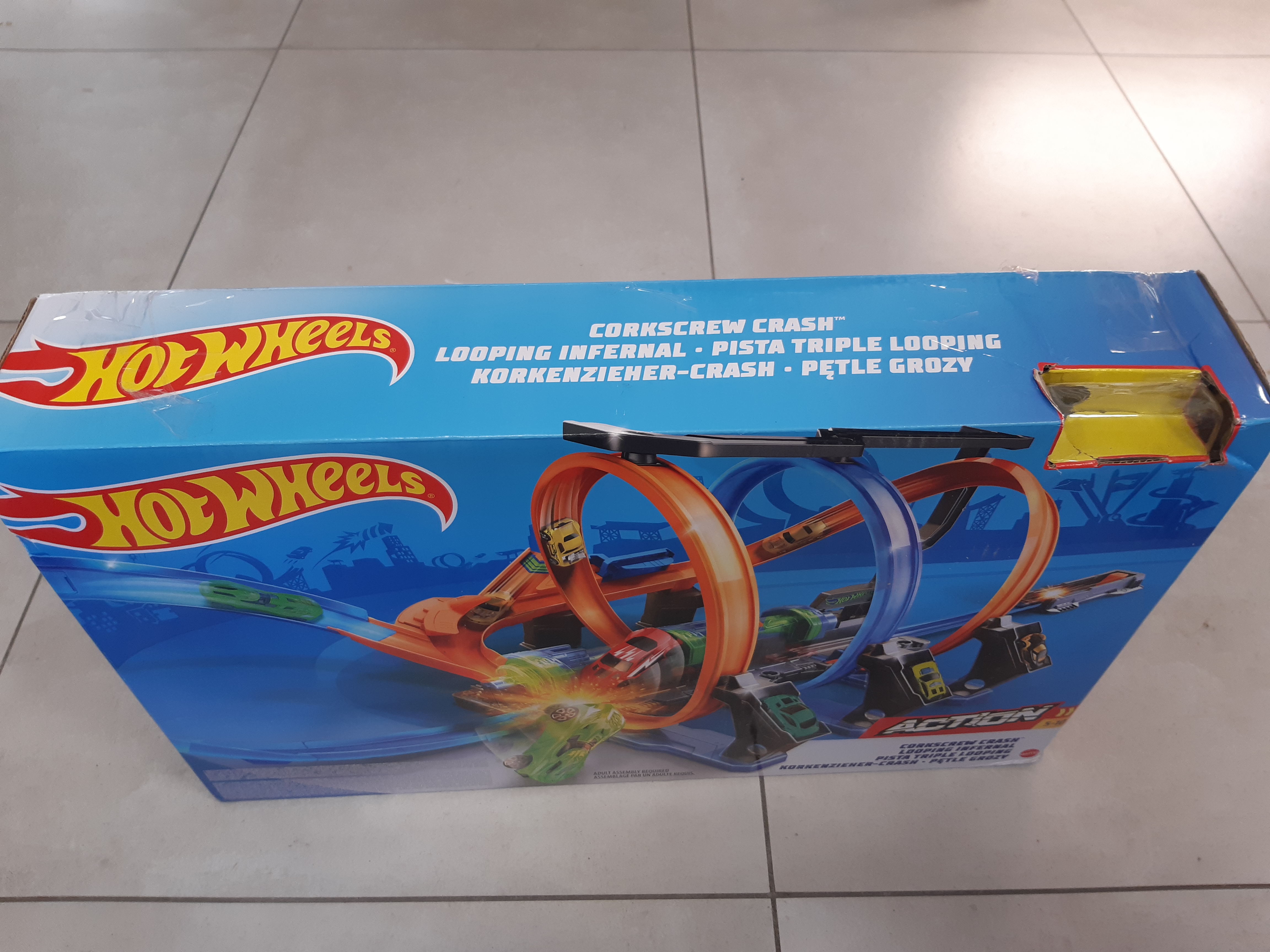 Zestaw torów z napędem Hot Wheels® Pętle grozy gwarantuje odjazdową zabawę na najwyższych obrotach! Wyjątkowy kształt korkociągu i 3 potężne przyspieszacze pozwalają samochodzikom pędzić z zawrotną prędkością po trzech pętlach toru i zderzać się ze sobą w 3 strefach kraks.