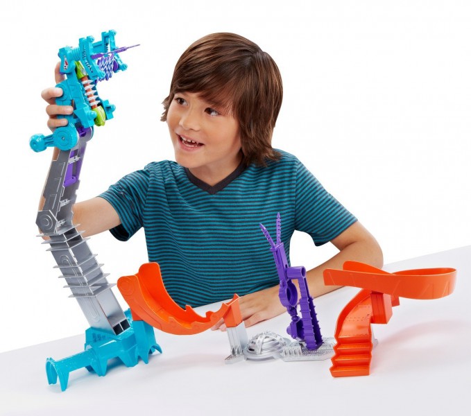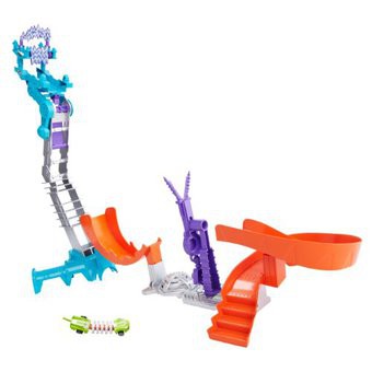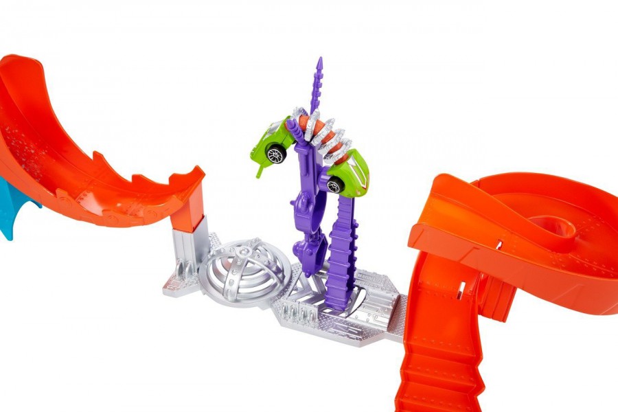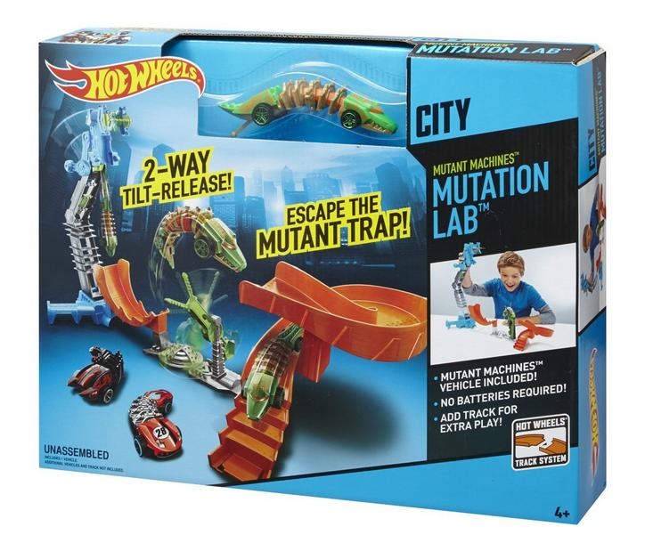 Pod miastem Hot Wheels® czają się zmutowane maszyny: półrobakipółpojazdy, które zrodziły się w laboratorium w wyniku nieudanego eksperymentu naukowego. Przygotuj się na ekscytującą zabawę pełną emocjonujących akcji! Odkryj sekrety tajnego laboratorium i kieruj pojazdami w nowy sposób: auta-mutanty zginają się i dopasowują do kształtu toru!