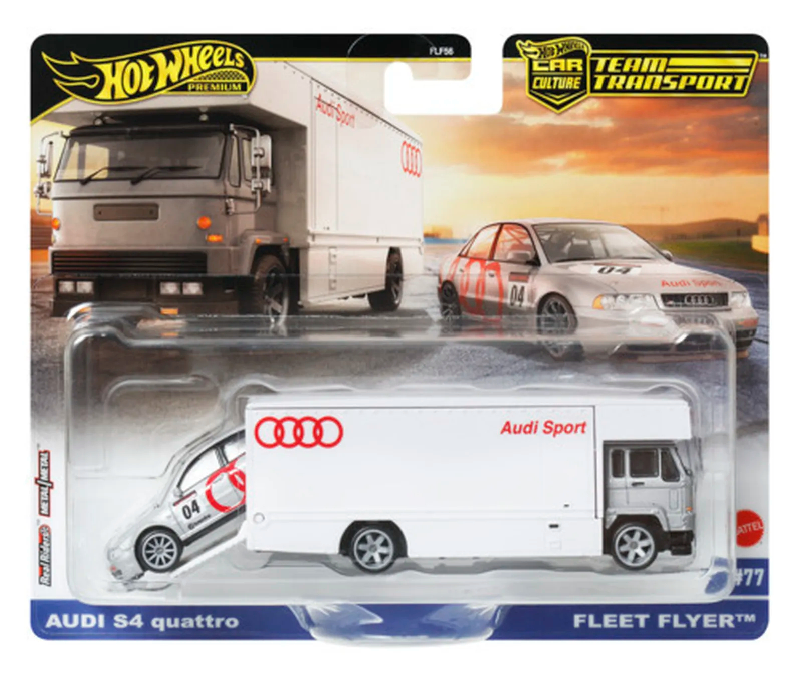 Hot Wheels Premium Team Transport Audi S4 quattro & Fleet Flyer JBM30 - uszkodzone opakowaniw