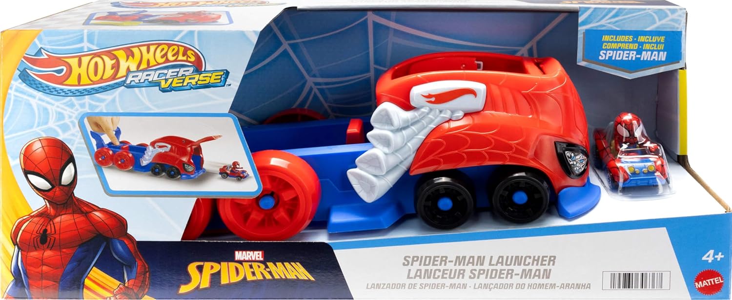 Hot Wheels Racer Verse Spider-Man Launcher pojazd z wyrzutnią + autko z figurką JFV70