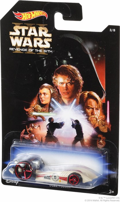 Samochodzik Duel Fueler nawiązujący do III części Gwiezdnych Wojen - Zemsty Sithów i Myśliwca Obi Wan.