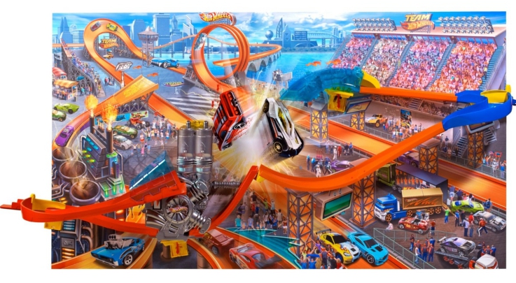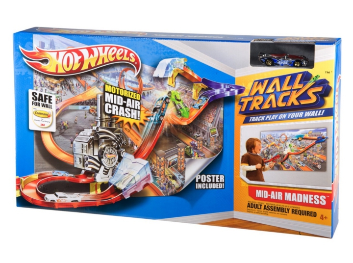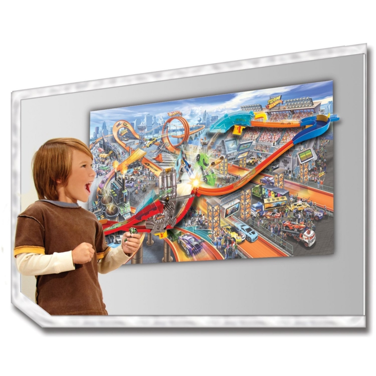 Po skończonej zabawie nie zajmuje miejsca w pokoju, a staje się jego zabawną ozdobą. Dodatkowo do toru dołączony jest plakat, który tworzy idealne tło różnych przejazdów i akcji. Tory z serii ścianowice można łączyć z innymi torami Hot Wheels. W zestawie znajduje się samochodzik Hot Wheels w skali 1:64.