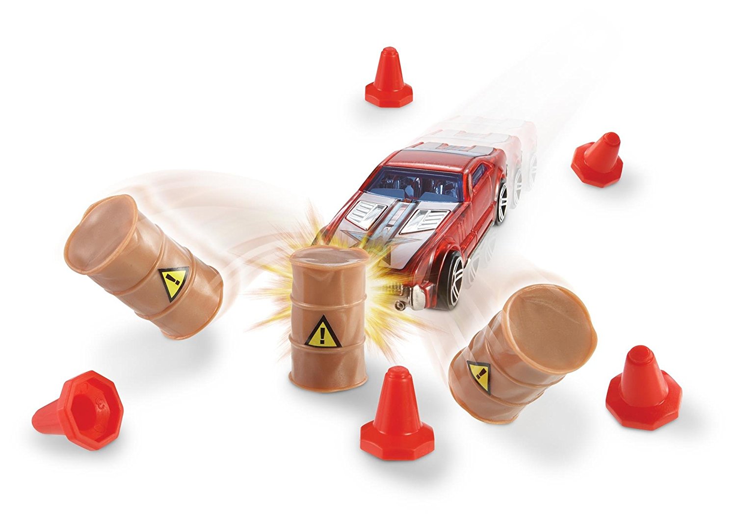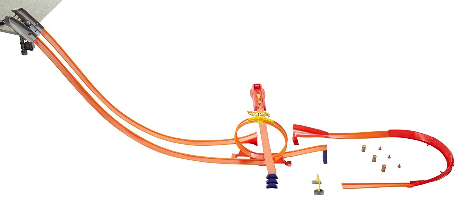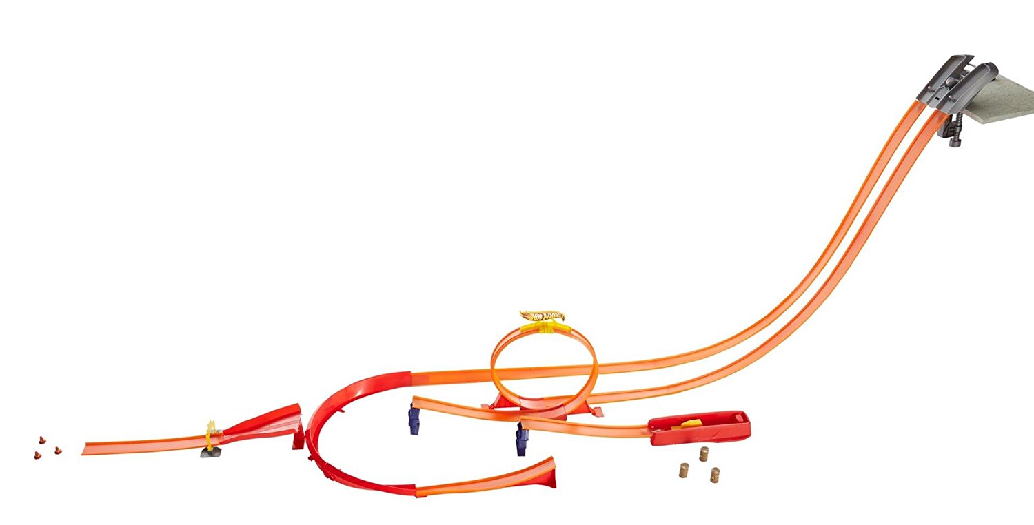 Ścigaj się, wykonuj odjazdowe sztuczki i bij rekordy prędkości na swoich własnych zasadach! Superpakiet torów Hot Wheels® pozwala budować tory według własnego pomysłu. Korzystaj z elementów toru, łączników, nachylonych zakrętów, skoczni, wyrzutni i torów równoległych, aby stworzyć wymarzoną trasę. Pędź po rampach i pętlach, dodawaj zakręty, skacz i pokonuj przeszkody. Ustawiaj ruchome pachołki i pojemniki na śmieci, aby stworzyć wyzwania. Możliwości są nieograniczone! Zestaw zawiera ponad 35 elementów: tory, łączniki, akcesoria oraz dwa samochodziki.