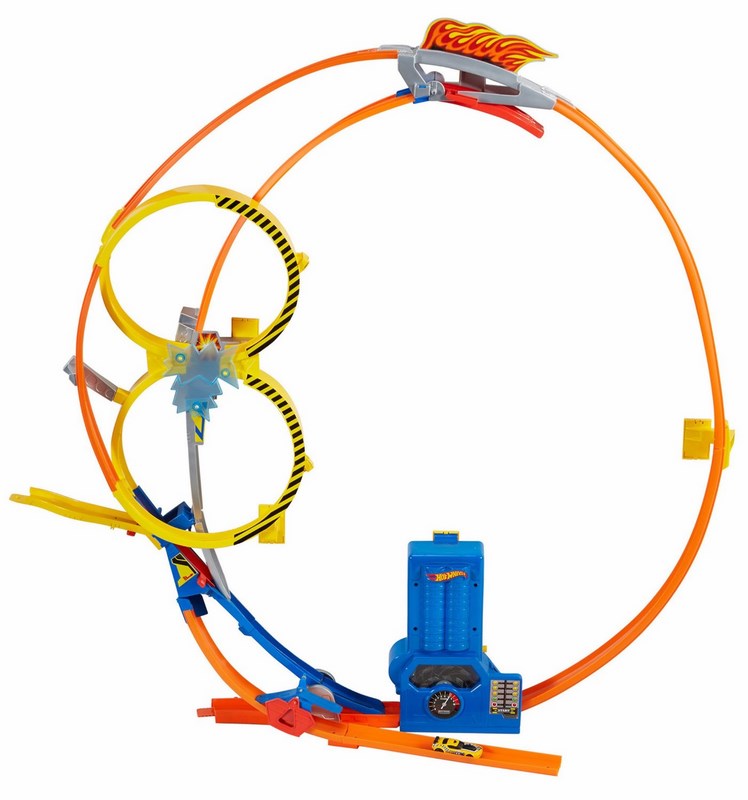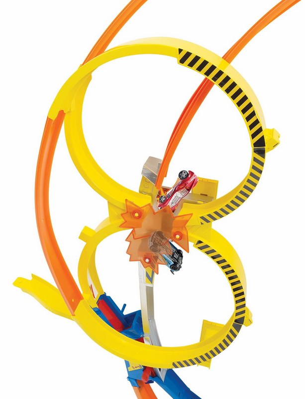 Przygotuj się na najszybszy zestaw na ogromnej, wystrzałowej pętli! Nowy zestaw torów z mechanizmem napędzającym wystrzeli Twój samochód w kosmos z maksymalną prędkością, aby wkroczył do akcji, która zaprzecza przyciąganiu ziemskiemu! Zobacz, jak Twoja maszyna pędzi po spektakularnej pętli o wysokości aż 90 cm! Możesz także wypuścić kilka samochodów naraz, aby jednocześnie pędziły w ekscytującym pościgu na najwyższych obrotach! Kto pojedzie ekstremalnie niebezpiecznym skrótem, aby wybić się na prowadzenie?