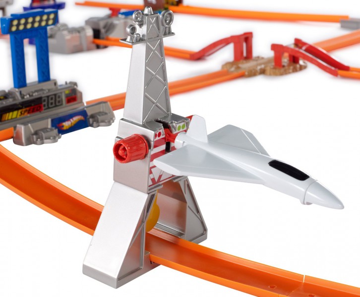 Ten superzestaw gwarantuje największe emocje! Wypuść na tor pięć samochodów w czterech kierunkach i ropocznij widowiskową zabawę! Wspinaj się na niebotyczne rampy i zjeżdżaj z samej góry, ciesząc się oszałamiającą prędkością. Ścigaj się z samolotem, skacz przez płomienie i weź udział w emocjonującym wyścigu na torach równoległych! Wieża zawiera pełny układ torów. Poznaj radość konstruowania! Wieżę można połączyć z torami z innych zestawów (sprzedawanymi oddzielnie). W zestawie znajduje się jeden pojazd.