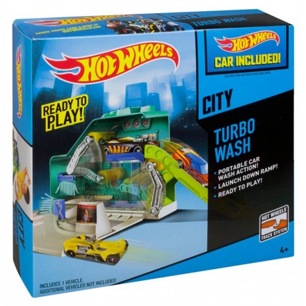 Dzięki temu zestawowi przygotujesz swoje samochody do drogi i zregenerujesz się w podróży! Ustawiaj elementy na różne sposoby i baw się inaczej za każdym razem – możliwości wymyślania nowych przygód są nieograniczone! Zestaw łatwo się łączy z innymi zestawami i torami wyścigowymi Hot Wheels®, tworząc nowe miejsca i trasy do jazdy, przygód i akrobacji. Buduj coraz większe miasto Hot Wheels®!