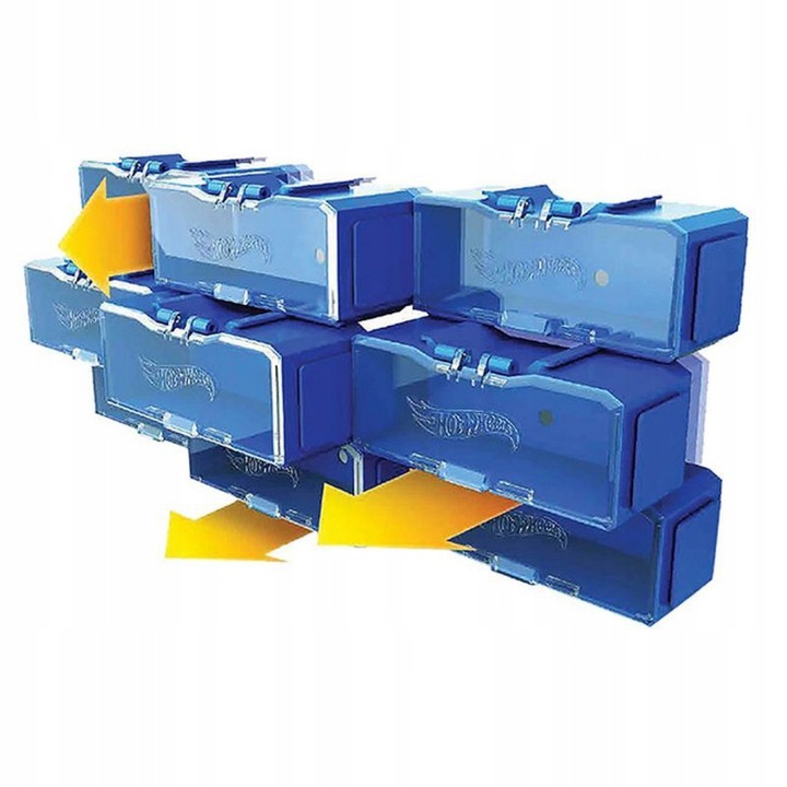 W środku znajduje się 8 miejsc na samochodziki. Dzięki walizce samochodziki zawsze będą w jednym miejscu! Dziecko za pomocą praktycznej rączki może zabierać ze sobą swoje ulubione samochody gdzie tylko zechce lub rozłączyć moduły i eksponować swoje ulubione autka.