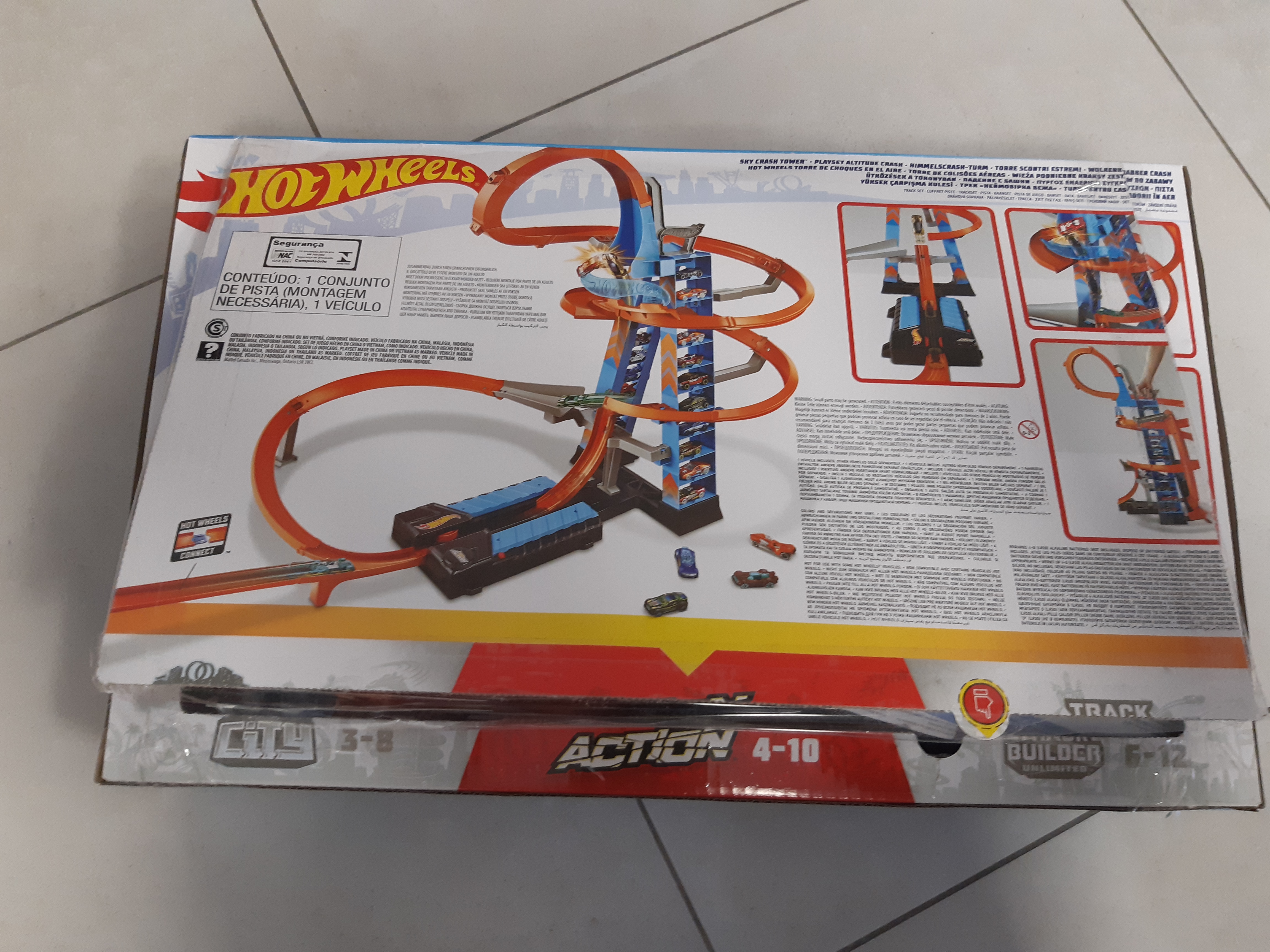 Hot Wheels Wieża Podniebne kraksy to wspaniały zestaw kaskaderski o wysokości ponad 75 cm. Za pomocą bramki napędzającej możesz posyłać samochody w górę toru, aby wykonywać zapierające dech w piersiach skoki i zderzać się w powietrzu. W wieży znajduje się miejsce, w którym można przechowywać aż 20 pojazdów! Pomarańczowy tor z wieloma zakrętami daje mnóstwo okazji do popisów kaskaderskich i kraks.
