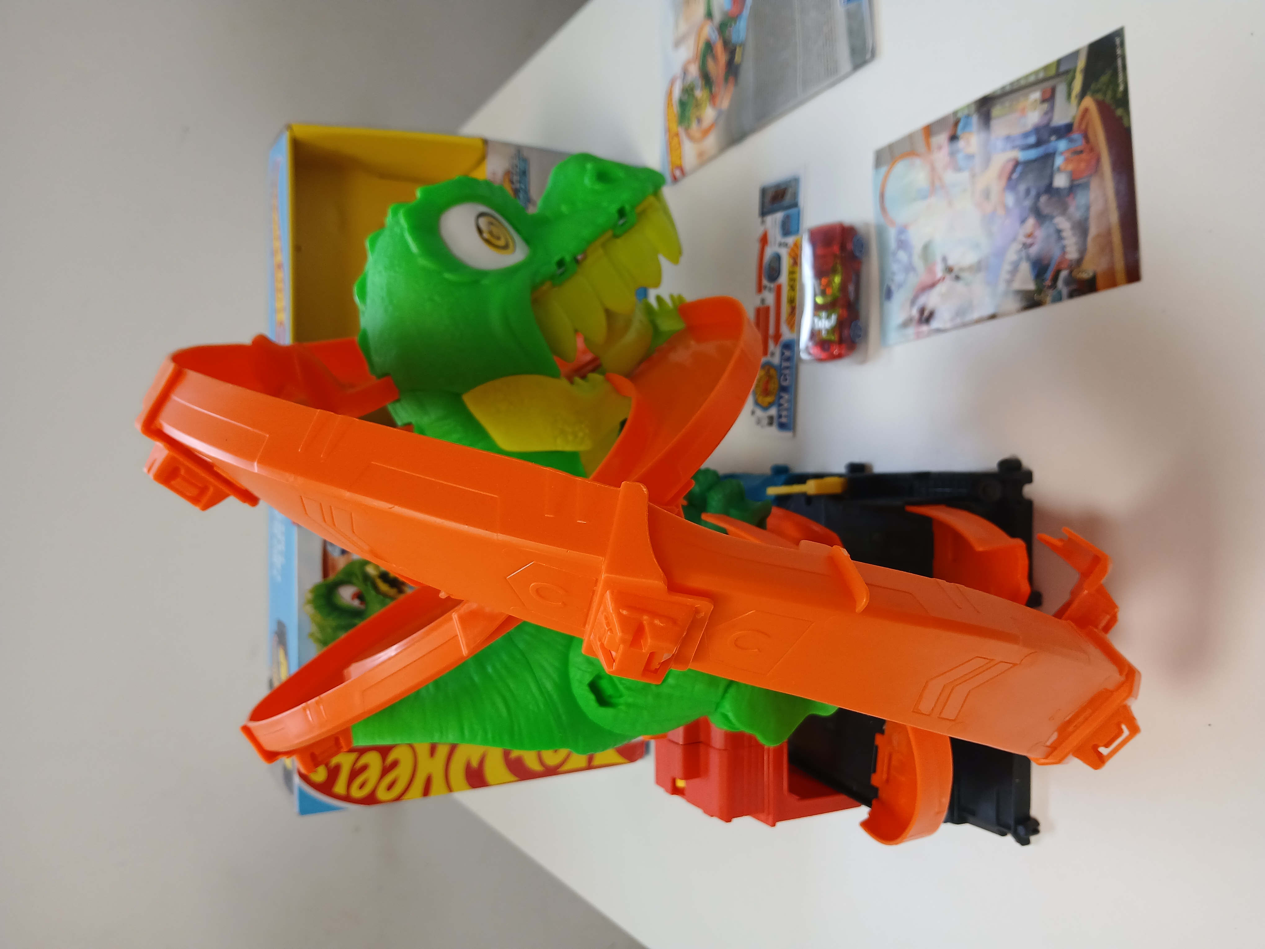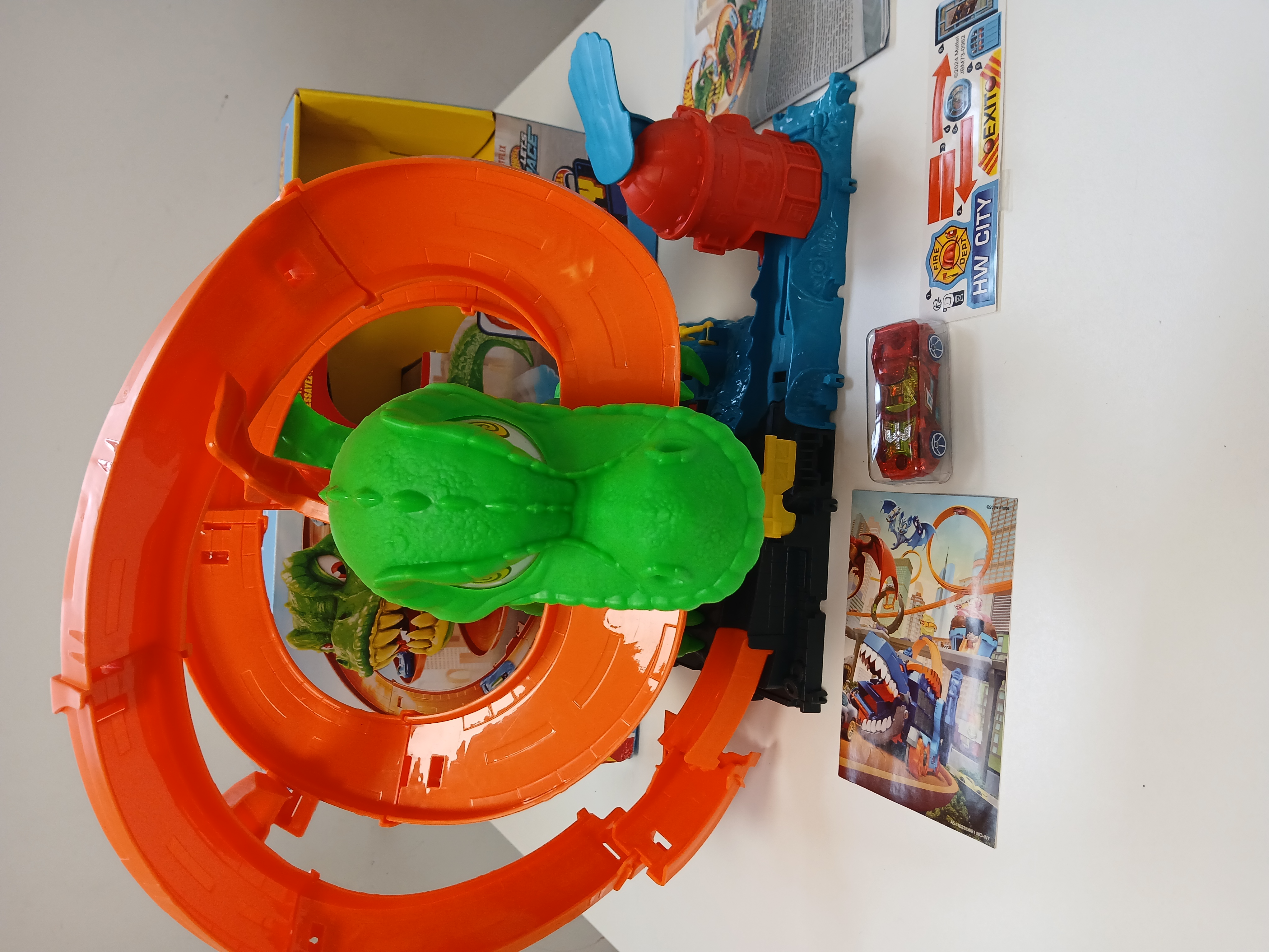 Hot Wheels Zakręcony tor Remiza T-Rexa JBM73 - zestaw z wadą