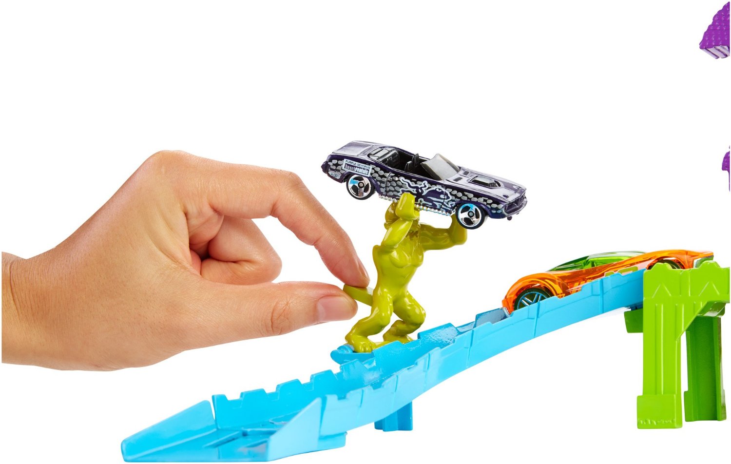 Dzieci mogą rozpocząć odjazdową akcję, ustawiając elementy na różne sposoby i bawiąc się inaczej za każdym razem – możliwości wymyślania nowych przygód są nieograniczone! Zestawy łączą z innymi zestawami i torami wyścigowymi Hot Wheels®.