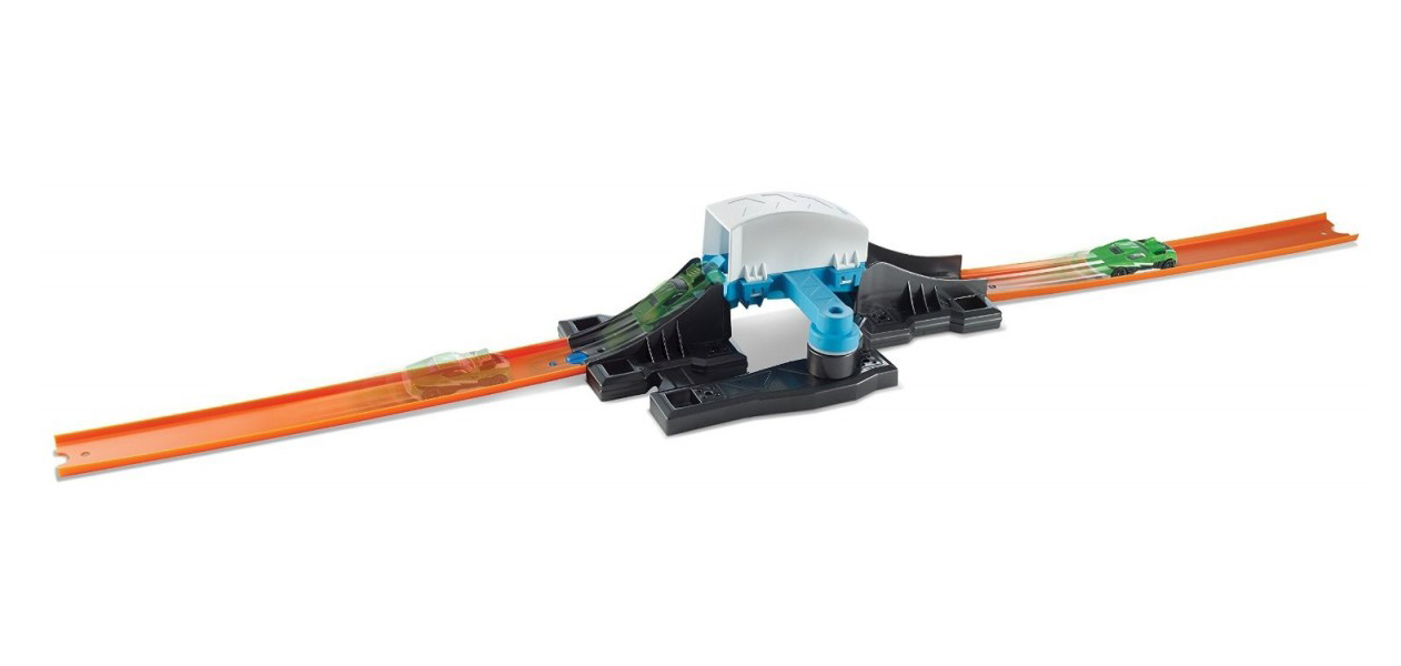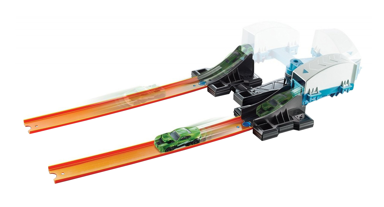 Przeżywaj gorące emocje na torze dzięki tym elementom przyspieszającym pojazdy od Hot Wheels®. Pokonuj zakręty dzięki specjalnej wyrzutni z zakrętami. Wjeżdżaj w ostre łuki, zawracaj lub jedź na wprost! Wyrzutnia z dwoma torami pozwala wystrzelić dwa samochody jednocześnie! Połączone elementy zapewniają dziecku ekscytujące sposoby na odjazdową zabawę autkami Hot Wheels na torze!