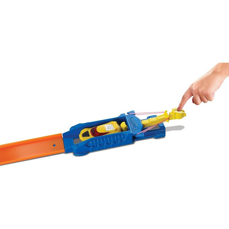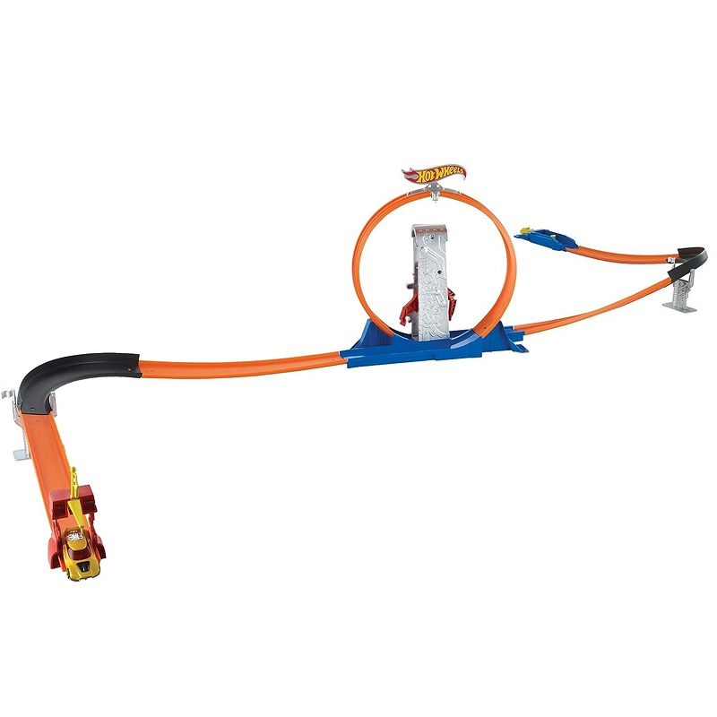 Niezapomniana przygoda czeka na Ciebie z ekscytującym torem wyścigowymi Hot Wheels Mega Rajd Pętla. Zmierz się z przyjaciółmi i pokonajcie zakręcony tor z pętlą i czarnymi zakrętami z bandami. Ustaw pojazd na linii startu pociągnij dźwignię i puść - pojazd wjedzie na tor, zmierzy się z pętlą, a po przejechaniu przez linię mety pojawi się chorągiewka sygnalizująca zakończenie wyścigu.