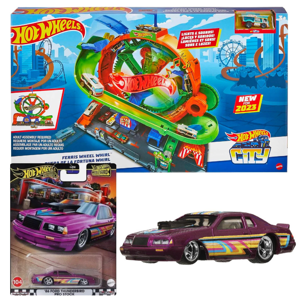 Hot Wheels Zestaw Miejski Diabelski Młyn ze światłem i dźwiękiem HKX46 + autko kolekcjonerskie Hot Wheels Boulevard Ford Thunderbird Pro Stock HRT72