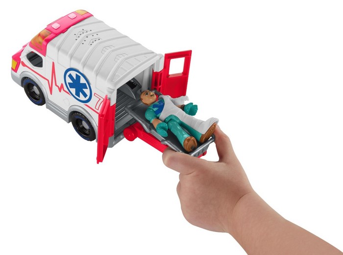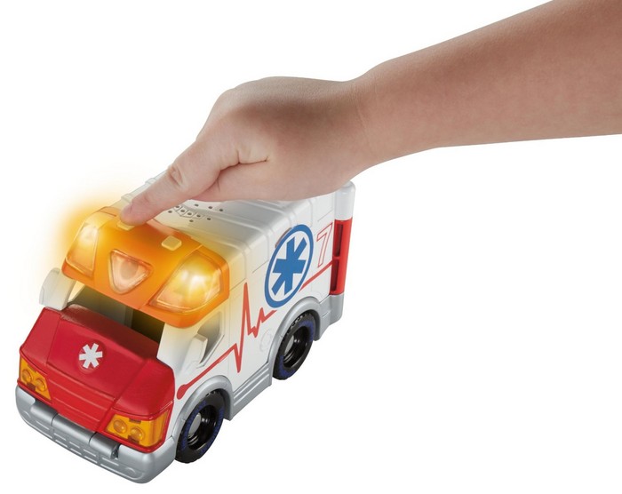 Baw się pojazdami miejskich służb ratunkowych lub dołącz je do zestawu "Miejskie centrum ratunkowe", z którym mogą się komunikować dzięki systemowi Action Tech. Pojazdy świecą światłami i mówią - bawiąc się, usłyszysz komunikaty głosowe ratowników.