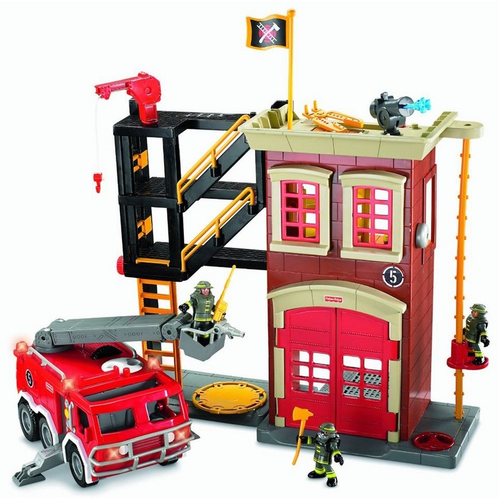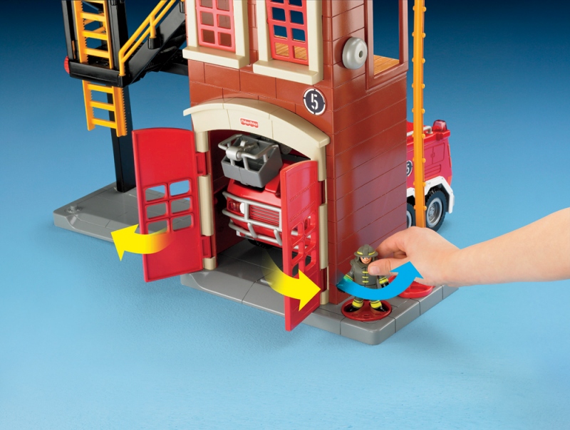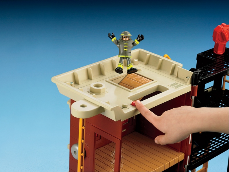 Niesamowicie ogromny zestaw strażacki z mnóstwem ruchomych elementów oraz efektami dźwiękowymi i świetlnymi to doskonały podarunek dla małych wielbicieli służb ratowniczych! Wejdź do remizy przez bramę główną lub użyj podnośnika i wskocz przez okno lub dach. Zaalarmowany strażak do pożaru zjeżdża z góry po rurze lub po wysuwanych drabinach. Może gasić pożar działkiem umieszczonym na dachu, lecz uwaga na zapadnie. Wstaw figurkę w odpowiednie miejsce i przekręć by uruchomić specjalną funkcję.