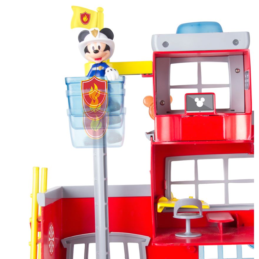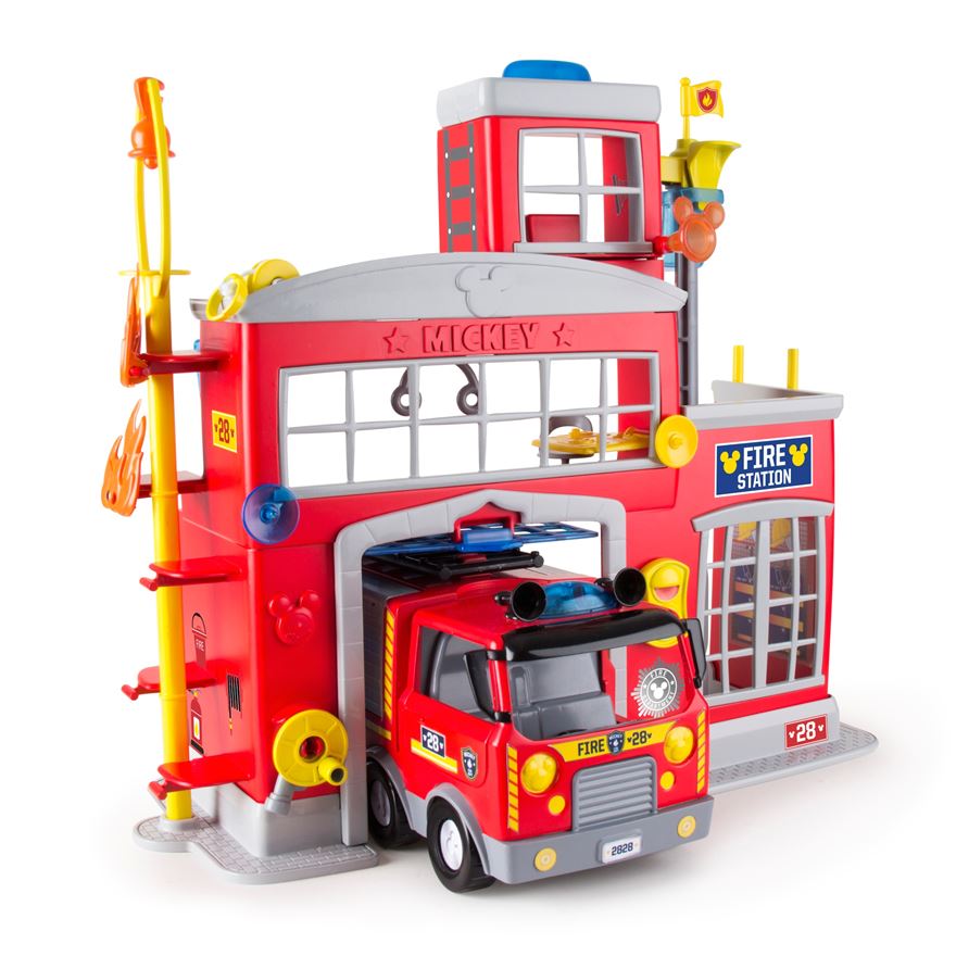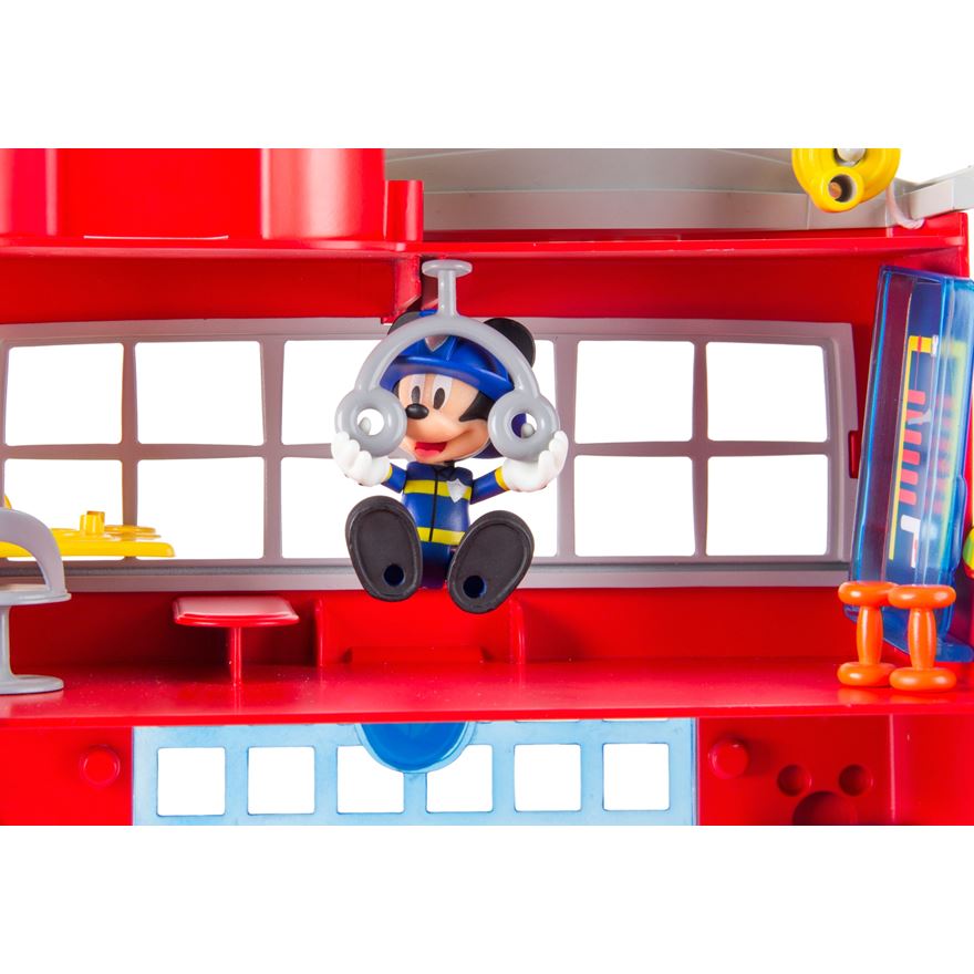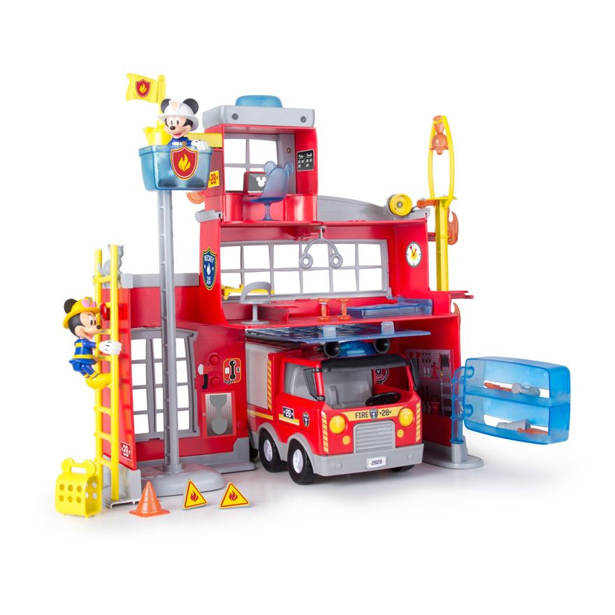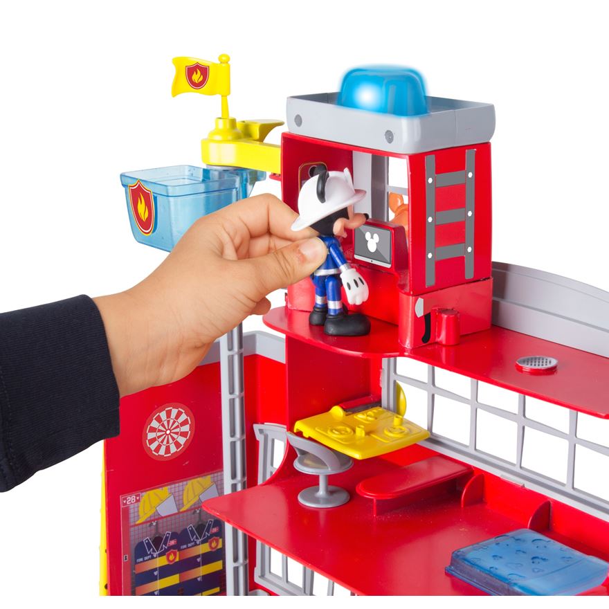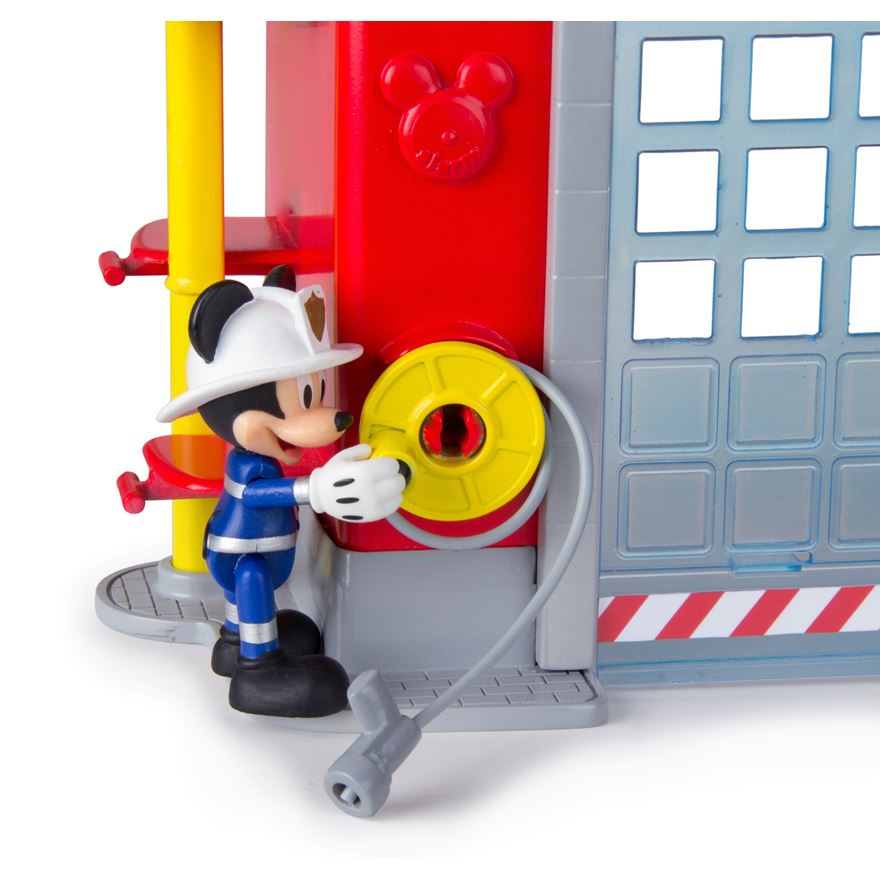 Remiza strażacka to w pełni funkcjonalna siedziba brygady ratunkowej Mikiego. Można zjeżdżać na rurce na niższe piętra, trenować w sali ćwiczeń i ugasić pożar z rozwijanego węża. Można nawet przespać się chwilę pomiędzy zmianami na rozkładanym łóżku. Cały zestaw jest pełen strażackich akcesoriów urozmaicających zabawę. Co więcej, figurki Mikiego i Minnie aktywują światła i odgłosy, gdy umieścimy ich pokoju dowodzenia — magia!