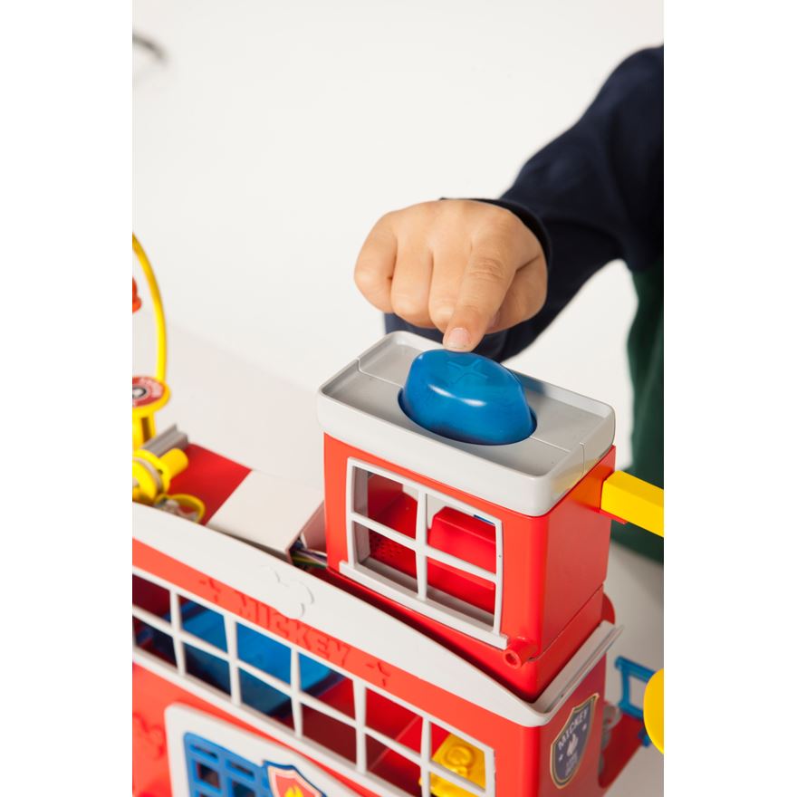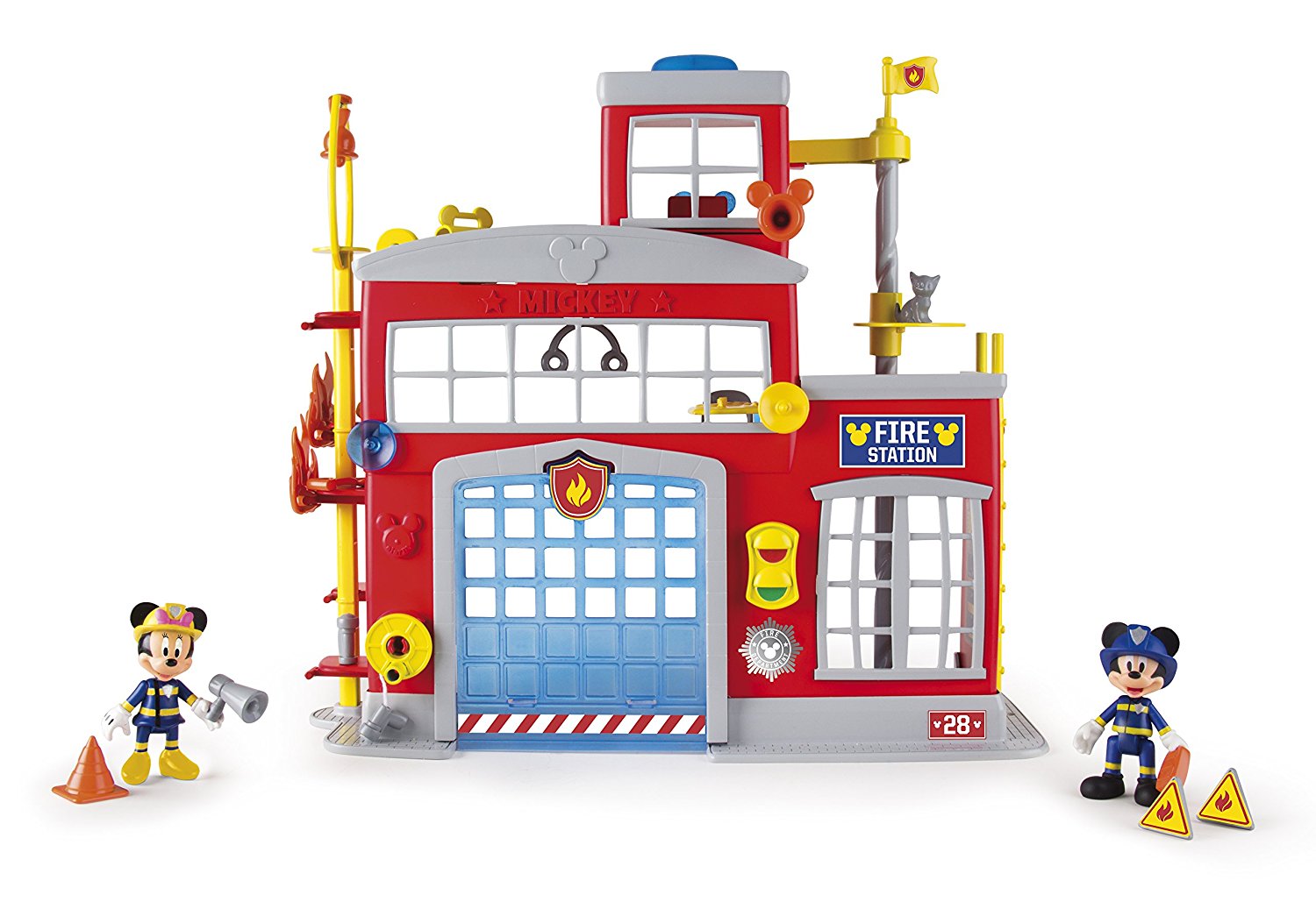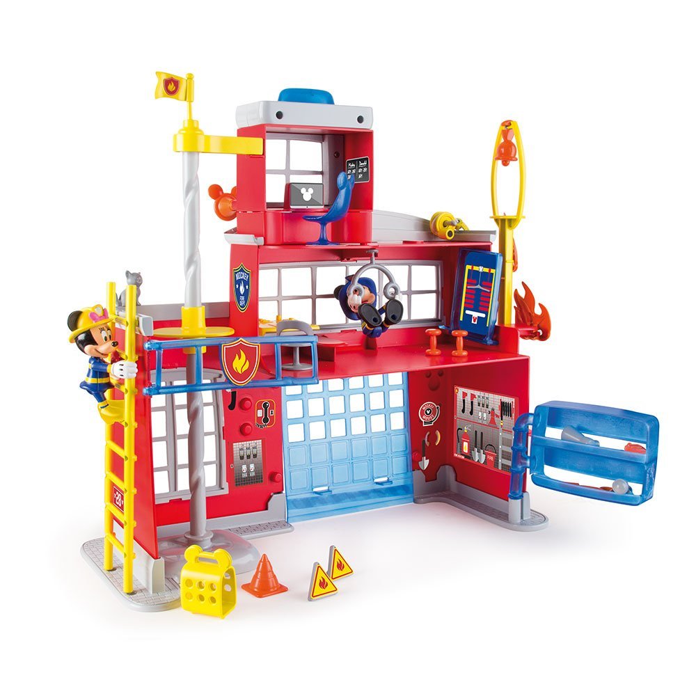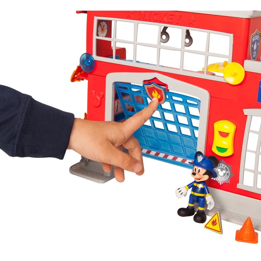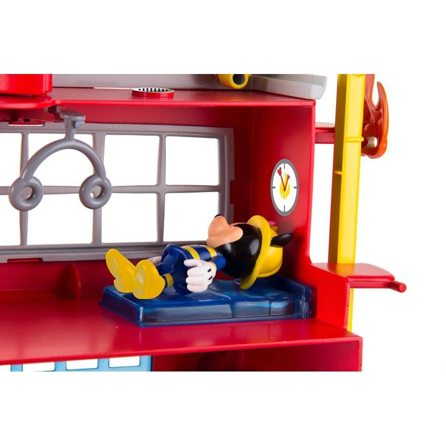 Remiza strażacka to w pełni funkcjonalna siedziba brygady ratunkowej Mikiego. Można zjeżdżać na rurce na niższe piętra, trenować w sali ćwiczeń i ugasić pożar z rozwijanego węża. Można nawet przespać się chwilę pomiędzy zmianami na rozkładanym łóżku. Cały zestaw jest pełen strażackich akcesoriów urozmaicających zabawę. Co więcej, figurki Mikiego i Minnie aktywują światła i odgłosy, gdy umieścimy ich pokoju dowodzenia — magia!