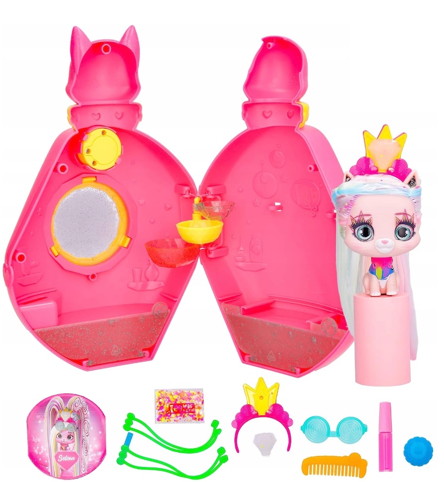 VIP Pets Cats to zupełnie nowa z kotkami! W serii jest 6 kotków do odkrycia. Każda figurka z serii cechuje się starannym wykonaniem oraz precyzyjnie dopracowanymi szczegółami. Kotki mają zachwycające długie włosy, w szałowych kolorach. Barwniki służące do farbowania włosów są nietoksyczne, dlatego nie istnieje żadne ryzyko wystąpienia alergii. Otwórz opakowanie i zapoznaj się ze swoim pupilem i odkryj 10 niespodzianek. Każdy z kotków posiada inny zestaw akcesoriów oraz akcesoria do stylizacji fryzur. Dodatkowo do każdego zestawu dołączony jest mini poradnik, który krok po kroku przeprowadzi przez proces tworzenia wystrzałowej fryzury.