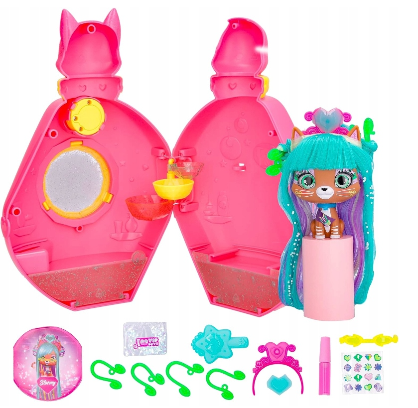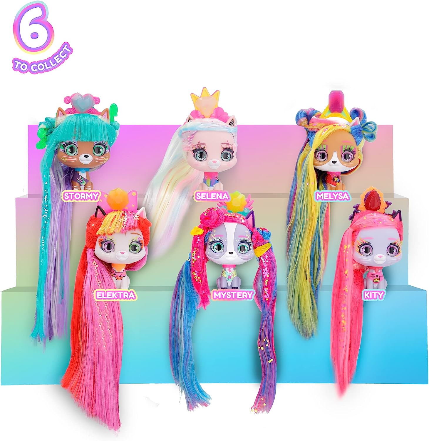 VIP Pets Cats to zupełnie nowa z kotkami! W serii jest 6 kotków do odkrycia. Każda figurka z serii cechuje się starannym wykonaniem oraz precyzyjnie dopracowanymi szczegółami. Kotki mają zachwycające długie włosy, w szałowych kolorach. Barwniki służące do farbowania włosów są nietoksyczne, dlatego nie istnieje żadne ryzyko wystąpienia alergii. Otwórz opakowanie i zapoznaj się ze swoim pupilem i odkryj 10 niespodzianek. Każdy z kotków posiada inny zestaw akcesoriów oraz akcesoria do stylizacji fryzur. Dodatkowo do każdego zestawu dołączony jest mini poradnik, który krok po kroku przeprowadzi przez proces tworzenia wystrzałowej fryzury.
