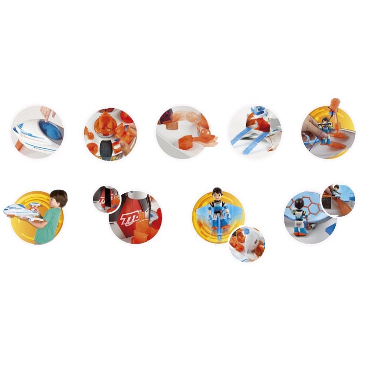 Olbrzymi statek kosmiczny Milesa z filmu Miles z Przyszłości, zawiera całe mnóstwo elementów jak i efekty dźwiękowe i świetlne oraz akcesoria niezbędne do kosmicznych podróży, kabina statku otwiera się za pomocą przycisku. Ten zestaw pozwoli ci przeżyć niesamowite przygody w świecie Mailsa.