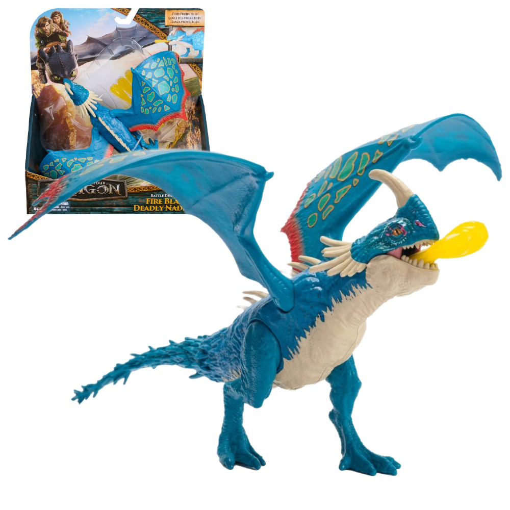 Jak wytresować smoka – Śmiertnik Zębacz smok fukncyjny przenosi dzieci w sam środek epickich przygód ze świata smoków i wikingów. Inspirowany filmem Jak wytresować smoka, ten imponujący smok pozwala odtworzyć ulubione sceny lub tworzyć zupełnie nowe historie pełne odwagi i akcji. Śmiertnik Zębacz został zaprojektowany z myślą o aktywnej zabawie – jego ruchome skrzydła i łapy pozwalają ustawiać go w bojowych pozach, a specjalna funkcja strzelania dodaje emocji każdej rozgrywce. Wystarczy załadować pocisk do pyska i nacisnąć przycisk, aby wystrzelić „ognisty atak” i ruszyć do walki lub treningu celności.