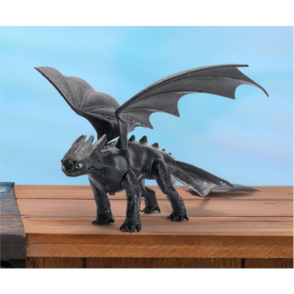 Jak wytresować smoka – Szczerbatek z efektami dźwiękowymi przenosi dzieci w sam środek epickich przygód ze świata smoków i wikingów. Inspirowany filmem Jak wytresować smoka, ten imponujący smok pozwala odtworzyć ulubione sceny lub tworzyć zupełnie nowe historie pełne odwagi i akcji. Dzięki realistycznemu wyglądowi oraz ruchomym elementom, Szczerbatek staje się idealnym towarzyszem zabawy. Wystarczy nacisnąć przycisk, aby aktywować efekty dźwiękowe – od potężnego ataku plazmowego po groźny ryk smoka. Dodatkowo ruchome skrzydła i nogi pozwalają symulować lot oraz dynamiczne sceny walki, co jeszcze bardziej angażuje dziecięcą wyobraźnię.