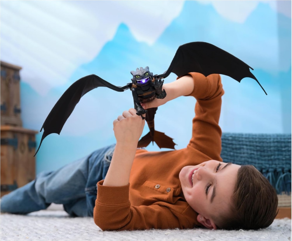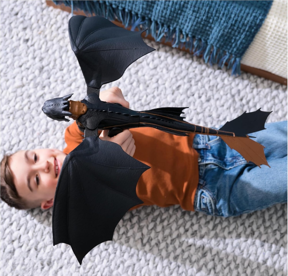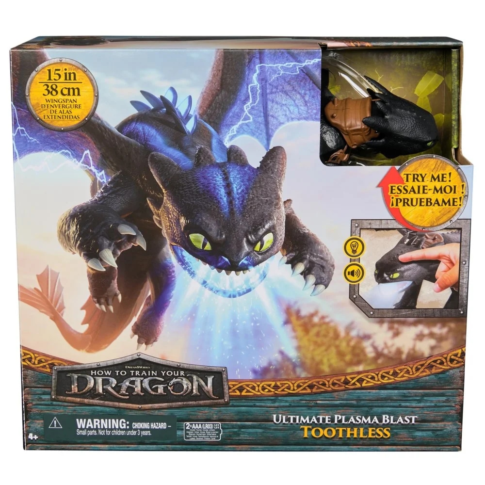 Wyrusz w epickie przygody z figurką smoka Szczerbatka z serii „Jak wytresować smoka: Ultimate Plasma Blast”! Ta pełna akcji zabawka przeniesie Cię prosto do ekscytującego świata smoków i Wikingów! Przekształć Szczerbatka z pozycji nurkowania, aby rozwinąć jego ogromne skrzydła w pozycji szybowania — o rozpiętości ok. 62 cm, tak jak w filmie! Naładuj plazmowy strzał jednym naciśnięciem przycisku, a następnie naciśnij go ponownie, aby go wystrzelić, co spowoduje zapalenie się światełek i odtworzenie odgłosów chrupania. Dzieci mogą odtwarzać swoje ulubione sceny lub wymyślać nowe historie!