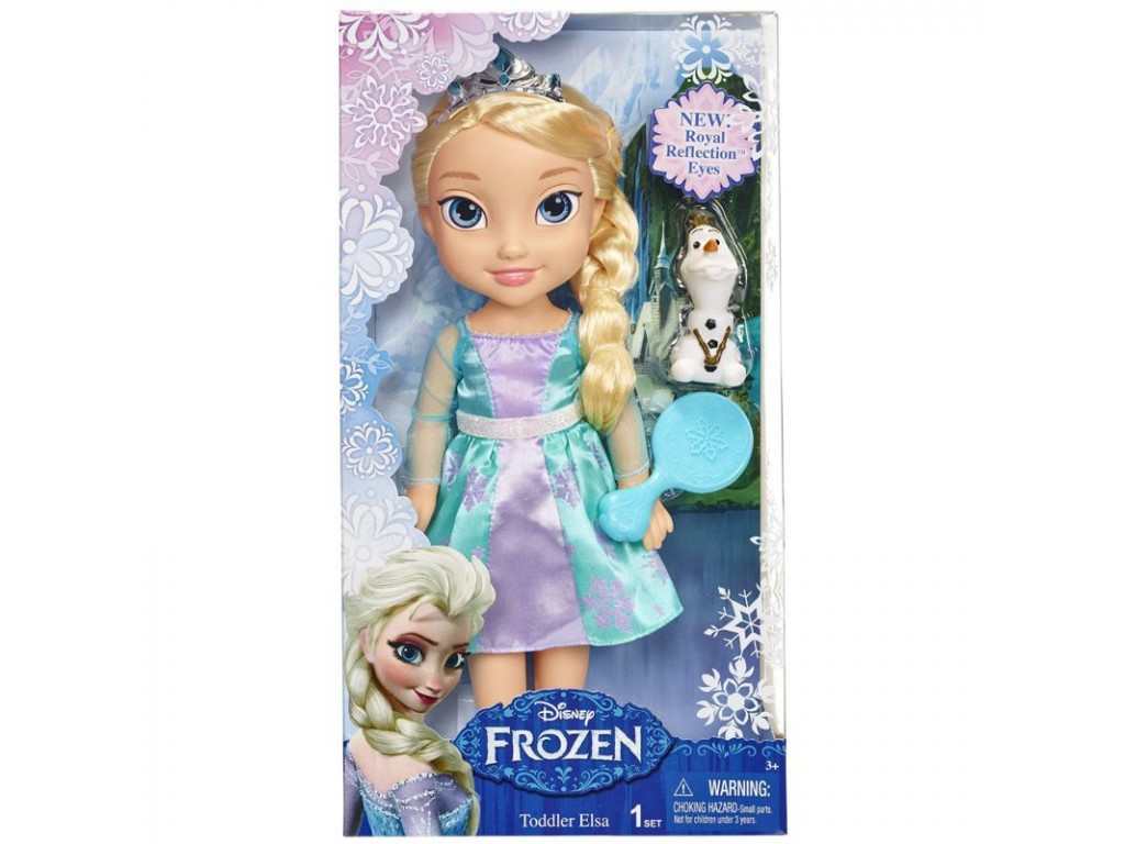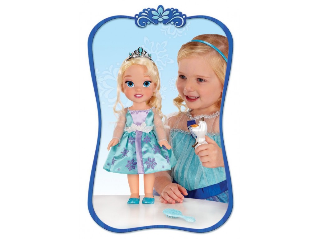 Księżniczka Elsa jest w towarzystwie swojego wiernego przyjaciela Olafa. Na głowie ma piękny diadem, a w dłoni lusterko. Elsa została wyposażona w funkcję Royal Reflection Eyes, czyli trójwymiarowe oczy w których dostrzec można blask marzeń i przygody. Buciki i sukienka są zdejmowane. Czas rozpocząć mroźną zabawę. Z tą dwójką nuda was nie dogoni.
