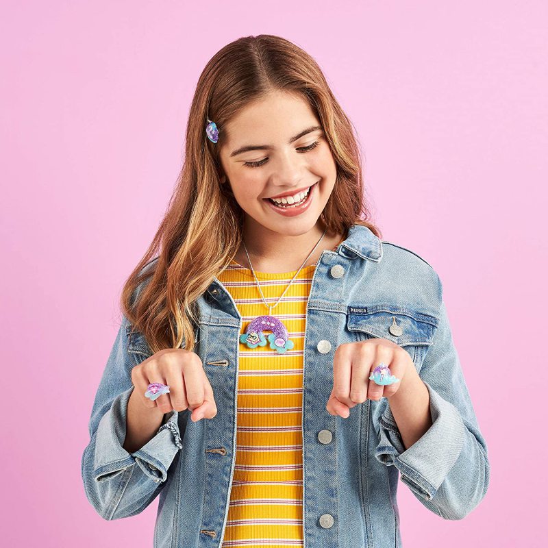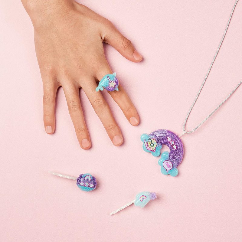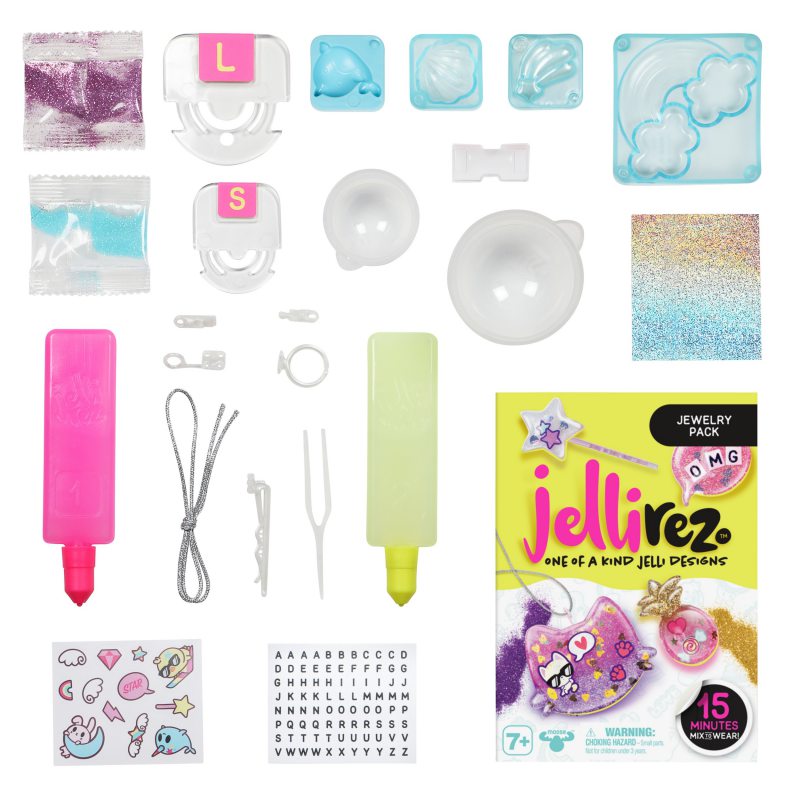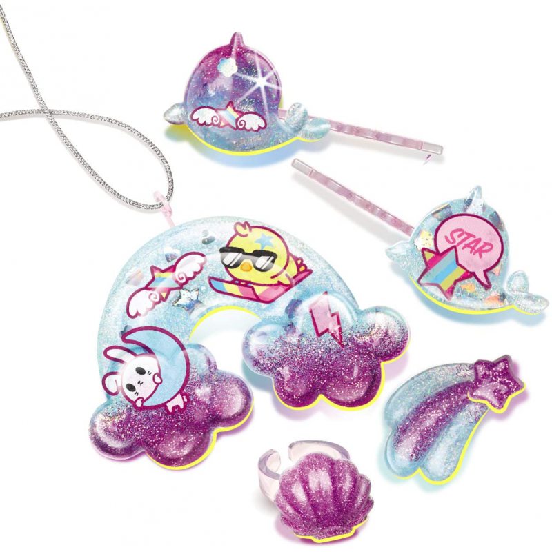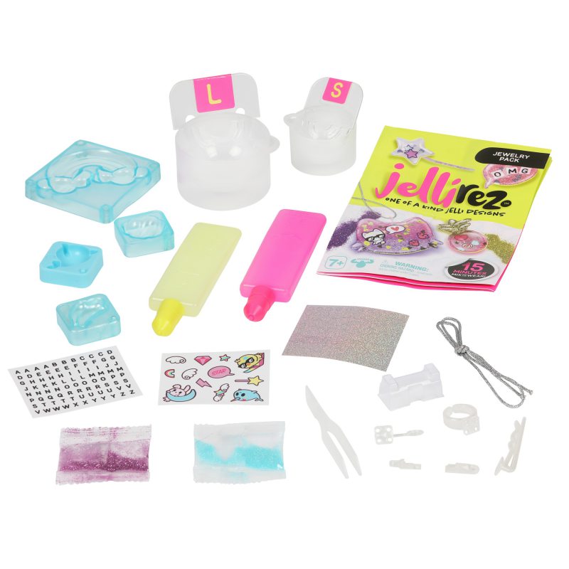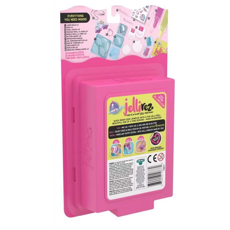Jelli Rez pozwala tworzyć jedyne w swoim rodzaju projekty biżuterii przy użyciu żelu i łatwego 3-etapowego procesu, który zajmuje tylko 15 minut - po prostu wymieszaj, uformuj i załóż! Jelli Rez wysycha powietrzem naturalnie i bezpiecznie. Zestaw podstawowy zawiera wszystko, czego potrzebujesz, aby stworzyć ponad 8 unikalnych projektów. Wzory form: tęcza, narwal, muszla i spadająca gwiazda. Stwórz pierścionek, naszyjnik i spinki do włosów, które możesz nosić lub obdarować swoich przyjaciół!