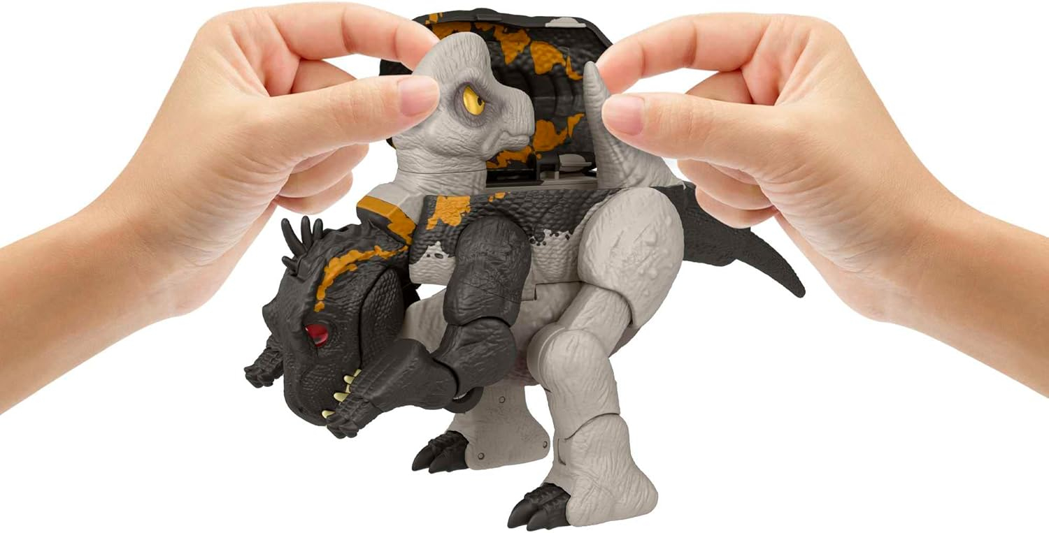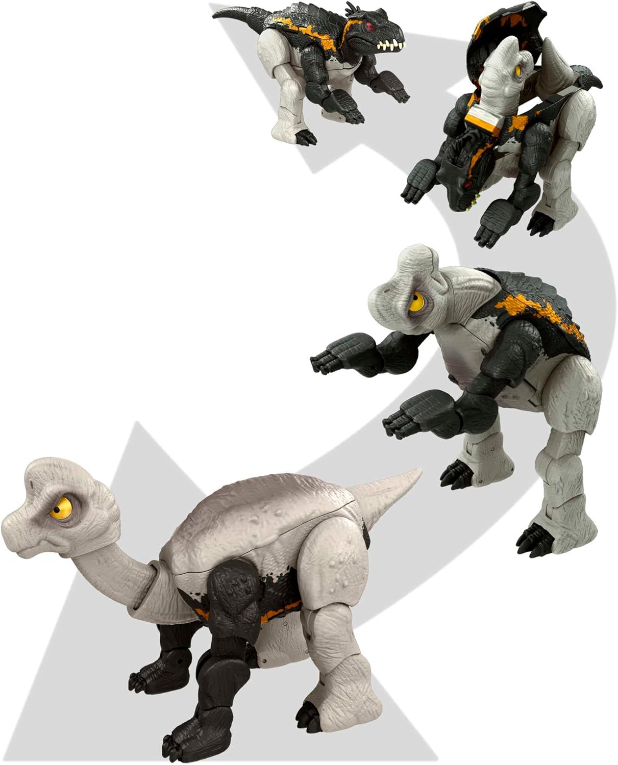 Odkryj dwie figurki dinozaurów w jednej! Ciesz się akcją w stylu Jurassic World we własnym domu z tymi figurkami 2w1 z transformacją, które zmieniają się z jednego dinozaura w drugiego w 16 imponujących krokach.