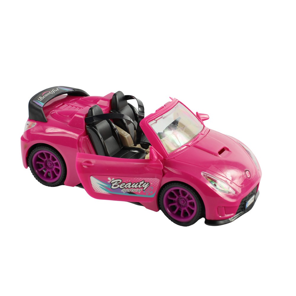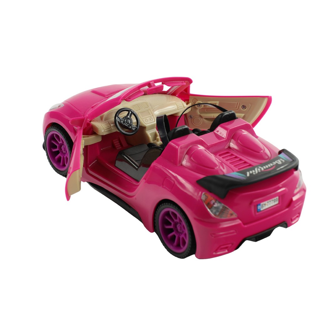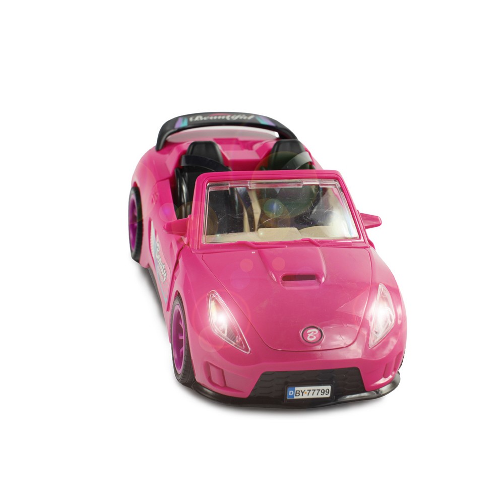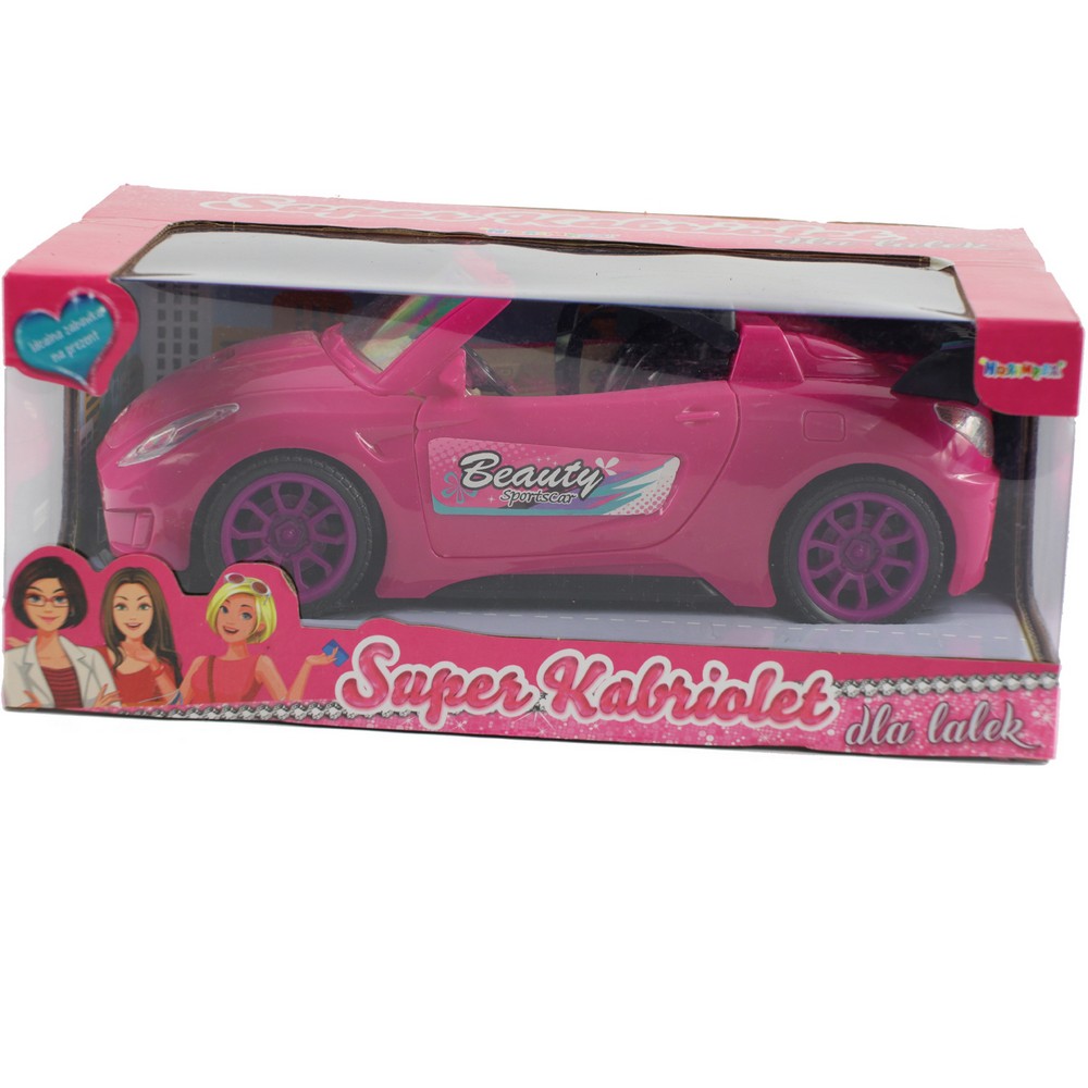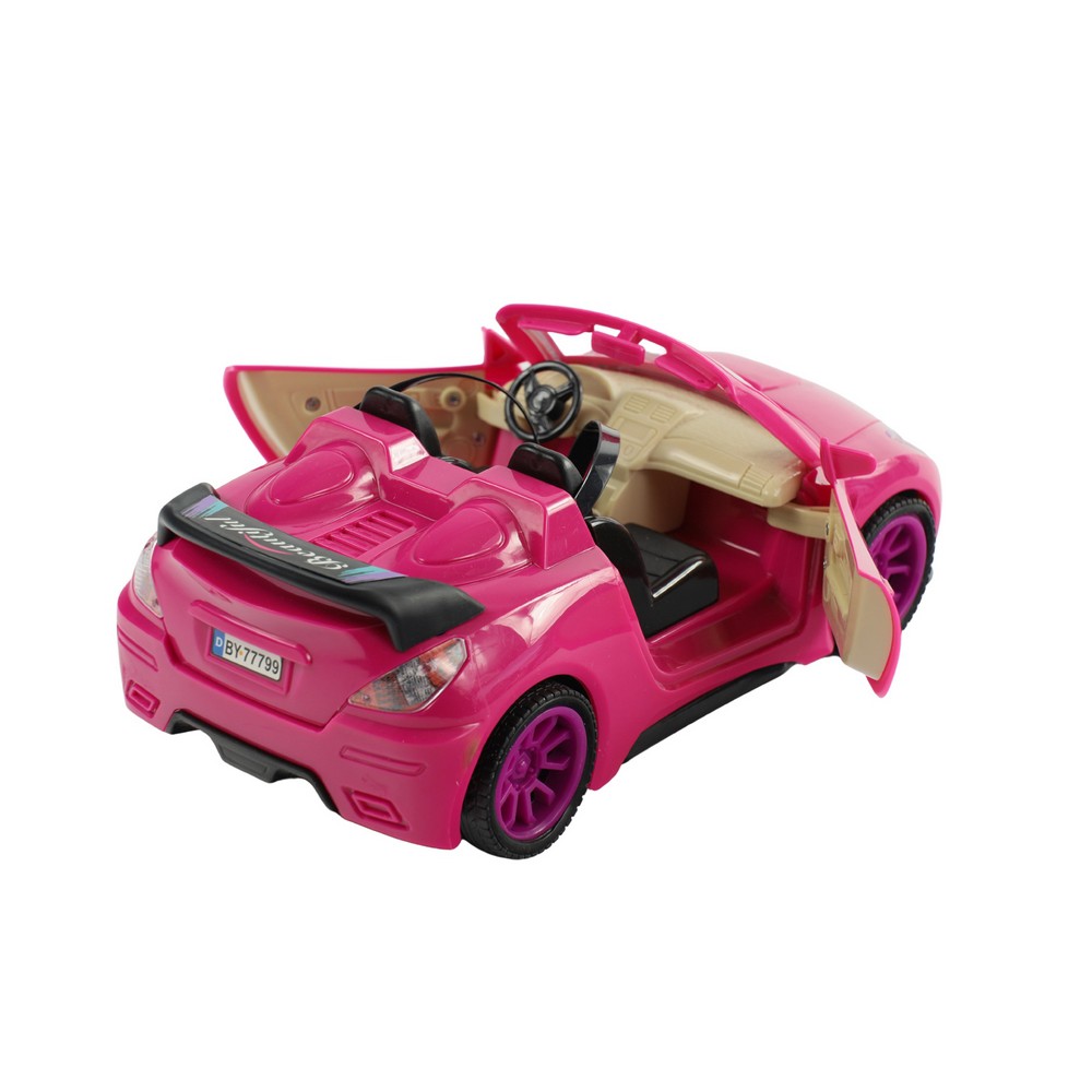 Różowy kabriolet z otwieraną maską i drzwiami wykonany jest bardzo dobrze i szczegółowo. W tym samochodzie lalki odbędą podróż w nieznane w komfortowych warunkach oraz z zachowaniem bezpieczeństwa, dzięki pasom przy fotelach. Tapicerka to beżowa imitacja skóry, która sprawia,że samochód staje się luksusowy. Jak na ekstrawaganckie auto dla lalek przystało znajdują się tutaj także sygnały świetlne i dźwiękowe, wystarczy nadusić literkę "B" na masce i wrażenia gwarantowane. Już teraz twoje lalki mogą wyruszyć w ekscytującą i daleką podróż!