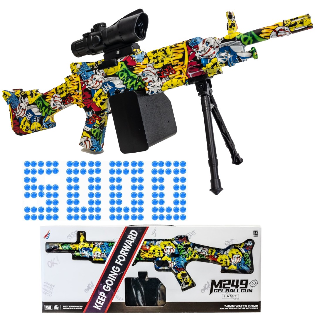 Karabin na kulki żelowe automatyczny z grafiką Joker M249 - uszkodzone opakowanie