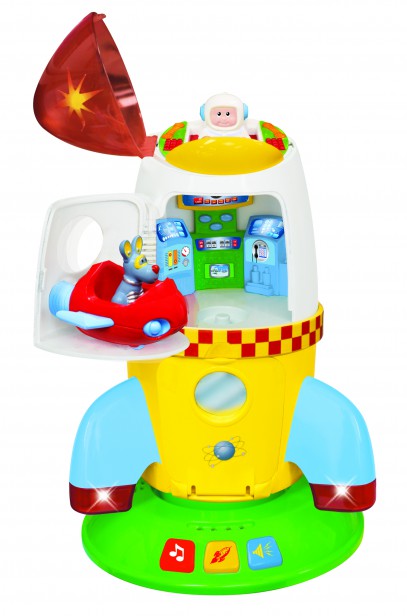 Na podstawie rakiety są trzy kolorowe guziki sterujące, żółty guziczek odpowiedzialny jest za poruszanie się rakiety a na końcówce skrzydeł zaczną mrugać światełka. Po naciśnięciu środkowego guzika rozpocznie się odliczanie. Gdy naciśniemy go ponownie usłyszymy gratulacje za zakończoną z powodzeniem misje. Trzeci – czerwony guziczek jest sygnałem alarmowym..