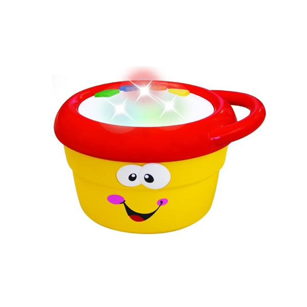 Bębenek Kiddieland wygrywa zwariowane melodie po naciśnięciu przycisków na przy obręczy instrumentu. W tym samym momencie tarcza zaczyna świecić się na kilka różnych kolorów.