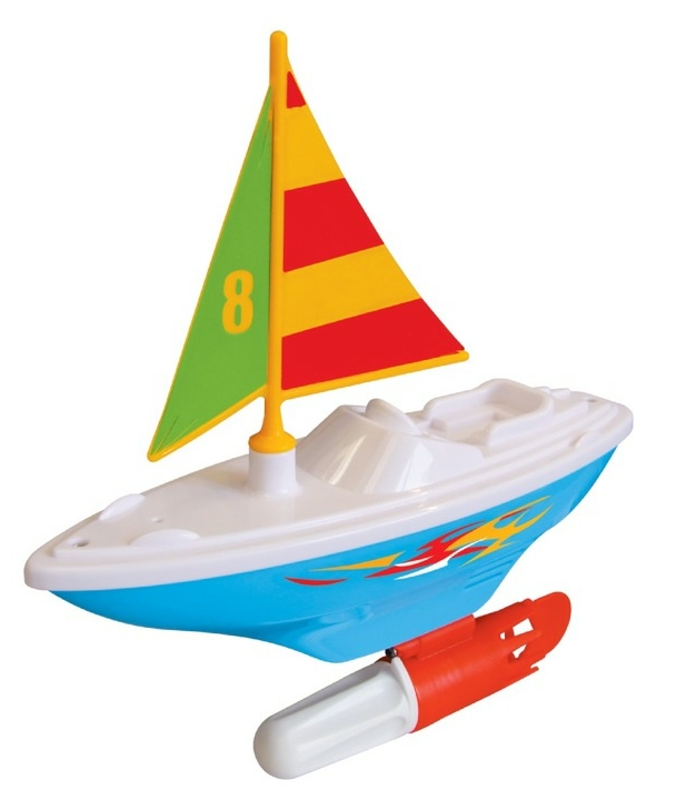 Kiddieland Moja Pierwsza Żaglówka z Napędem 47910 w sam raz przyda się do zabawy w wodzie. To doskonałe urozmaicenie każdej kąpieli. Kiedy dziecko przekręci pokrętło OFF/ON uruchomi łódkę i usłyszy dźwięk silnika. Łódka płynie do przodu, a po przekręceniu steru w prawo bądź w lewo skręca w odpowiednim kierunku.
