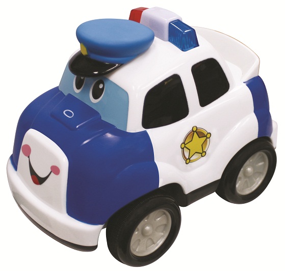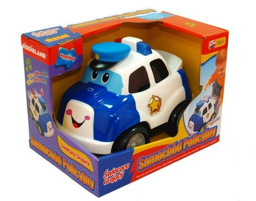 Kiddieland Samochód Policyjny Naciśnij i Jedź - gdy naciśniemy czapkę rozlegnie się realistyczny dźwięk zapalanego silnika, po chwili wesołą melodię, a następnie odgłos syreny policyjnej. Po naciśnięciu "koguta" ponownie rozlegnie się realistyczny dźwięk syreny oraz trąbienia. Po przejechaniu pewnego dystansu samochód się zatrzyma. Samochód policyjny posiada funkcję samoistnego wyłączania się po kilku minutach "bezczynności".