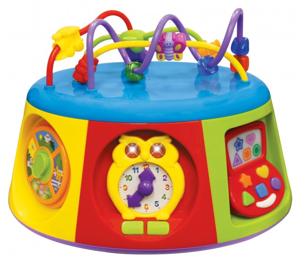 Zabawna kostka jest pełna ciekawych niespodzianek, ekscytujących światełek oraz wypełniona zabawnymi dźwiękami prawie w każdym miejscu. Posiada 7 różnych stron, a każda z nich to nowa interesująca zabawka. Dziecko może wykręcić numer na tarczy mini telefonu , naciskać guziczki w różnych kształtach na mini komputerku, przekręcić wskazówki zegarka w kształcie sowy lub zagrać na mini pianinku.