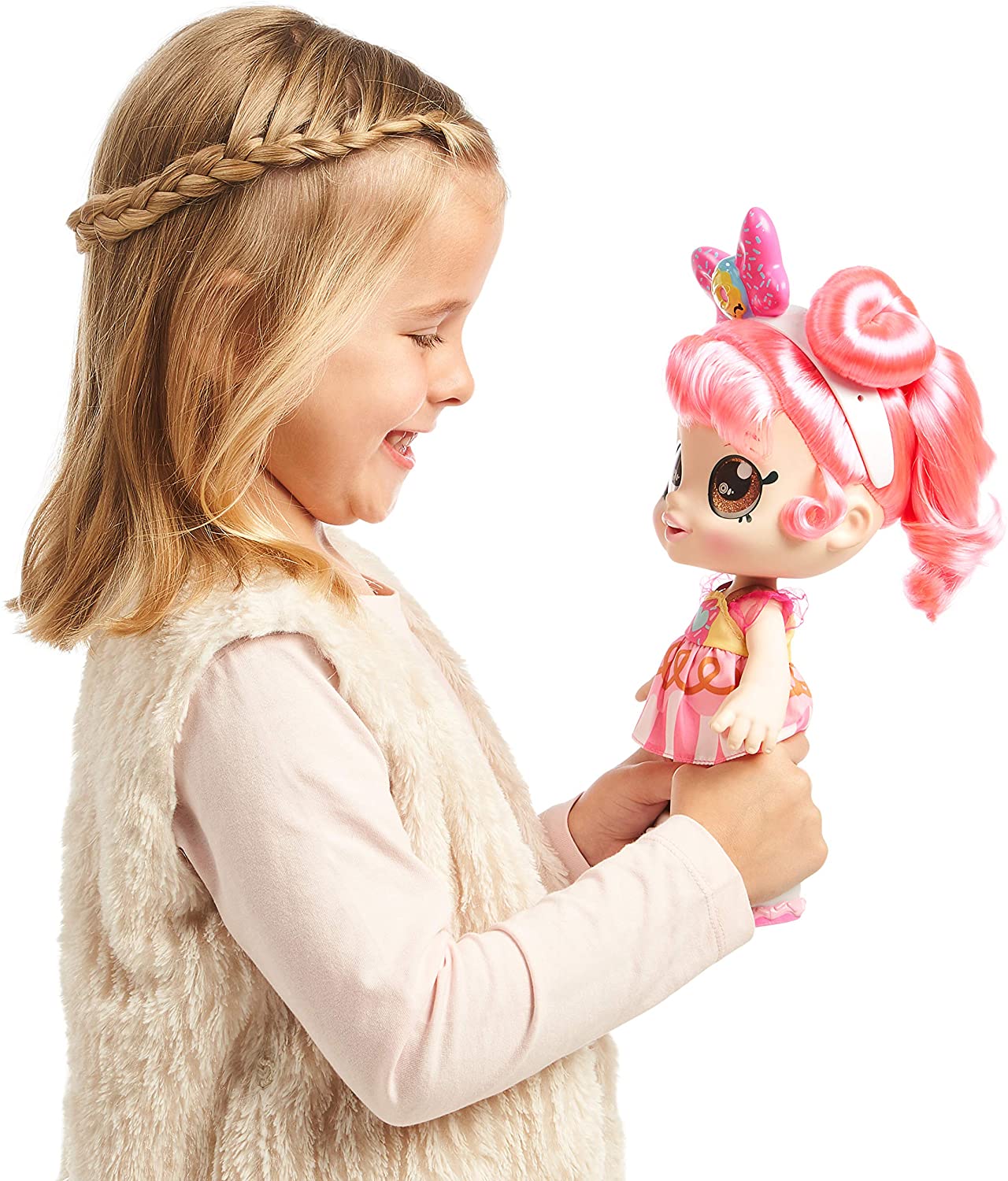 Kindi Kids to najsłodsze lalki, jakie kiedykolwiek widziałeś. Urocze laleczki lalki mają piękne kolorowe włosy oraz cudowne duże kolorowe błyszczące oczy. Laleczki potrafią kiwać głową. Kindi Kids mają kolorowe zdejmowane ubranka oraz buciki. Każda lalka ma w zestawie inne przekąski.