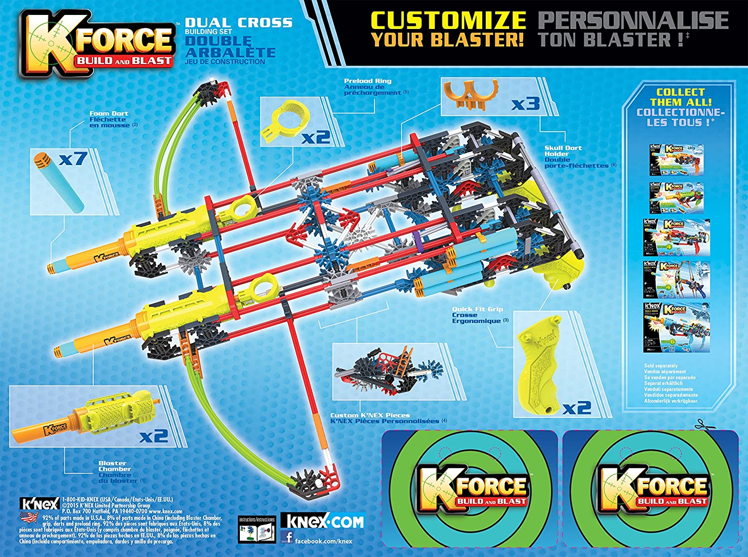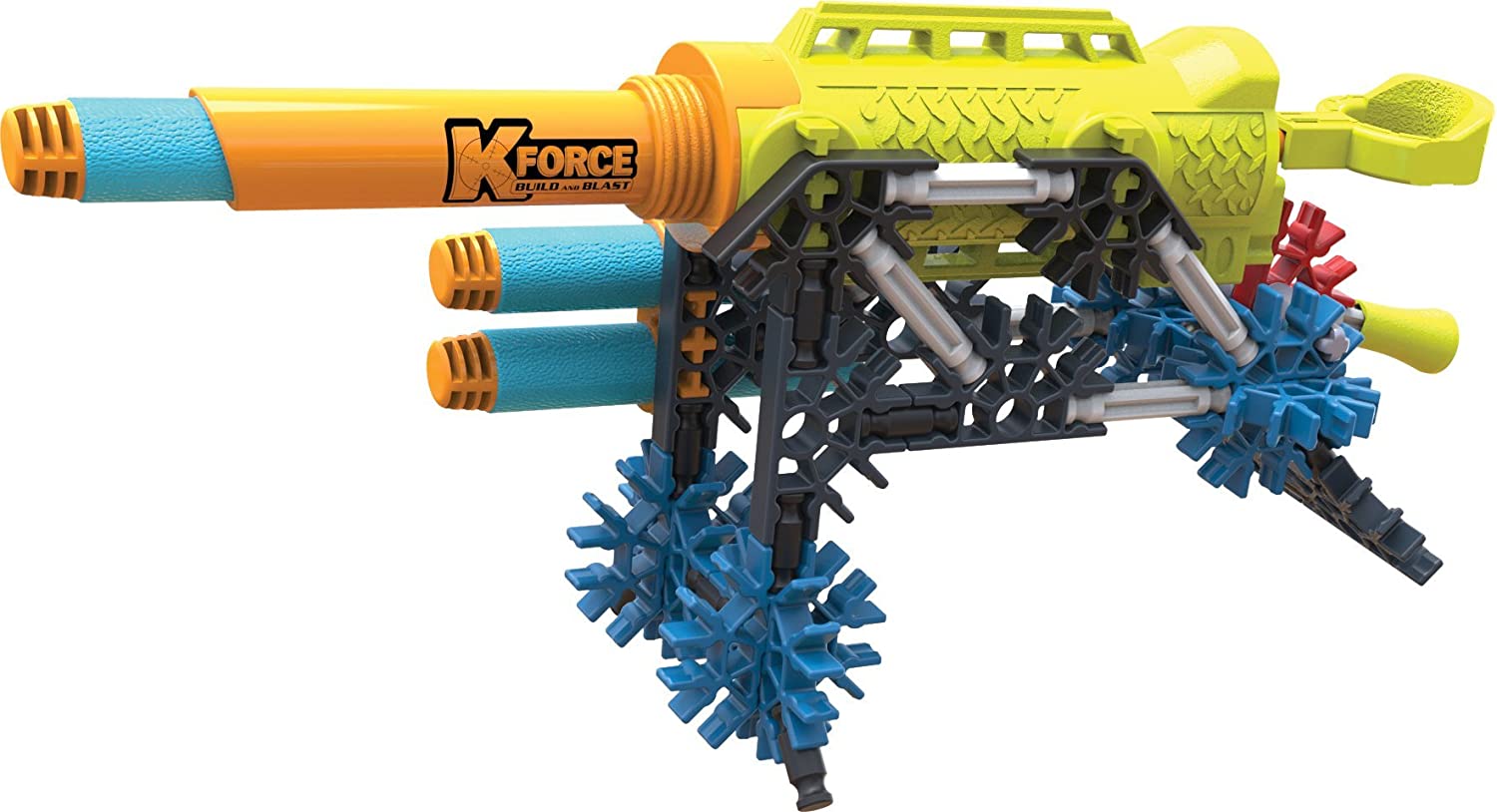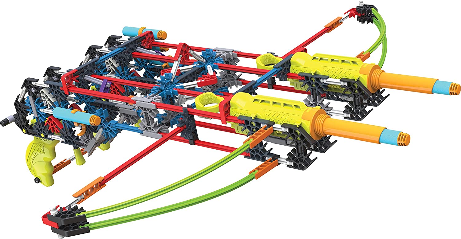 K'nex to system innowacyjnych klocków plastikowych, to nowa generacja systemu klocków nie tylko dla dzieci. Zabawki amerykańskiej firmy k'nex łączą wspaniałą zabawę z rozwojem umiejętności manualnych i kreatywnego myślenia. Zestaw wyróżnia się wysoką jakością materiałów, trwałość i ciekawą kolorystyką oraz precyzją wykonania. Z zestawu klocków można wybudować kilka różnych i przestrzennych modeli broni, a stworzona wyrzutnia potrafi strzelać a odległość nawet do 22m!