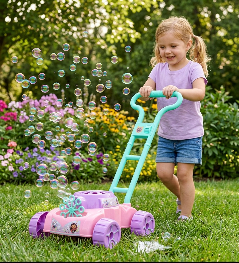Zamień zwykłą zabawę w kolorową przygodę pełną baniek! Bańkowa kosiarka inspirowana Gabby’s Dollhouse to wyjątkowa zabawka, która podczas pchania wytwarza mnóstwo baniek mydlanych. Wystarczy napełnić ją płynem i ruszyć przed siebie, aby stworzyć magiczny efekt. Kosiarka została zaprojektowana z myślą o najmłodszych – jest łatwa w obsłudze i gotowa do użycia od razu po wyjęciu z opakowania. Dodatkowo dziecko może ozdobić ją dołączonymi naklejkami, tworząc własną, unikalną wersję.