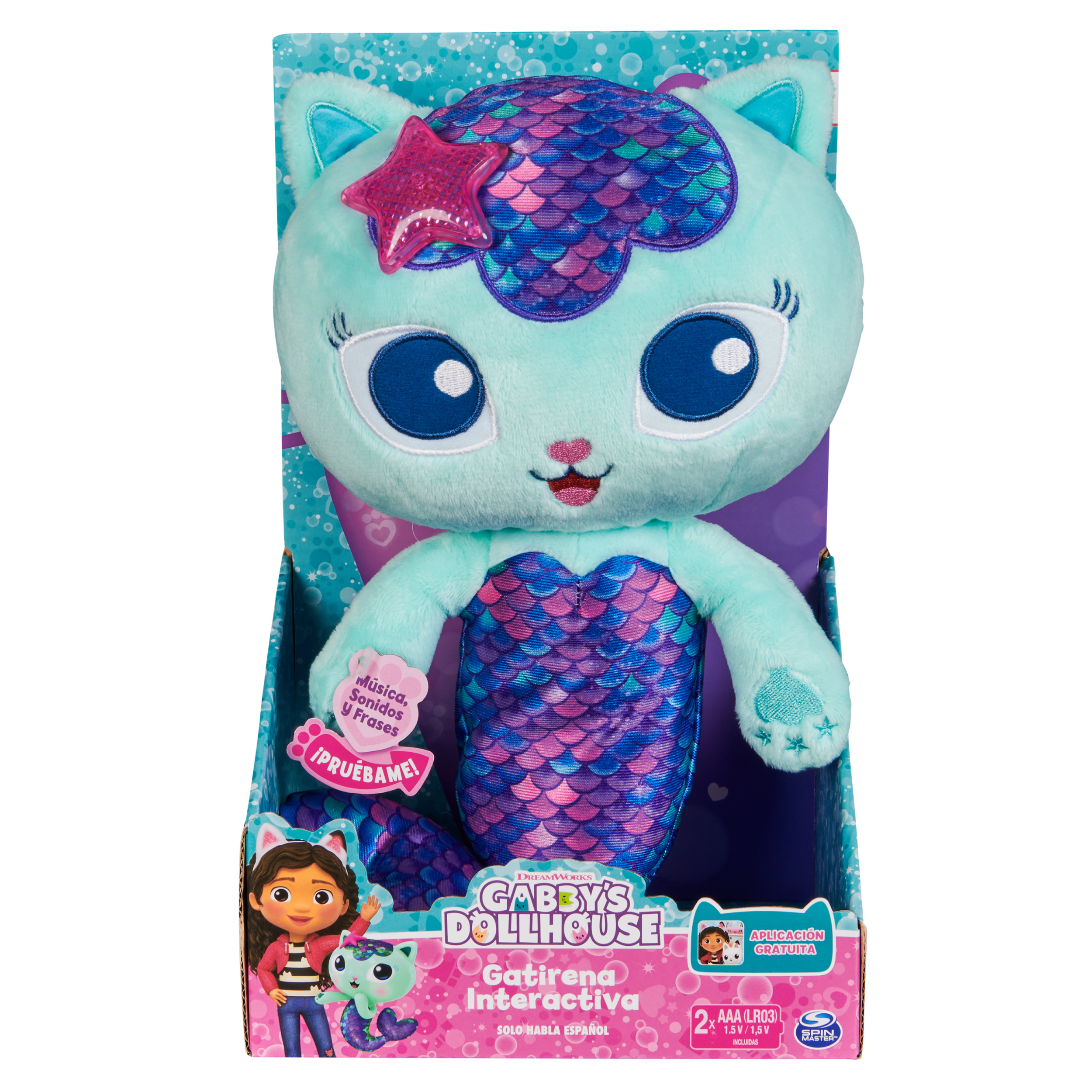 Przygotuj się na niekończące się przytulanki z Syrenkotką! Miękka i milutka interaktywna pluszowa kotka ożywia przyjaciółkę Gabby z serialu! Dzięki swoim spiczastym uszom, uroczemu ogonkowi, haftowanym detalom i świecącej rozgwiazdce na głowie, Syrenkotka jest idealną towarzyszką do zabawy i do snu!