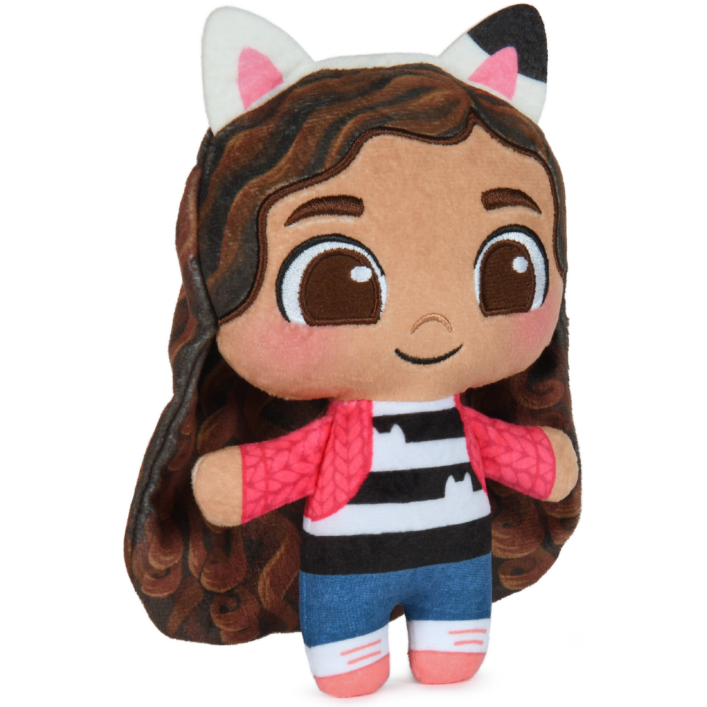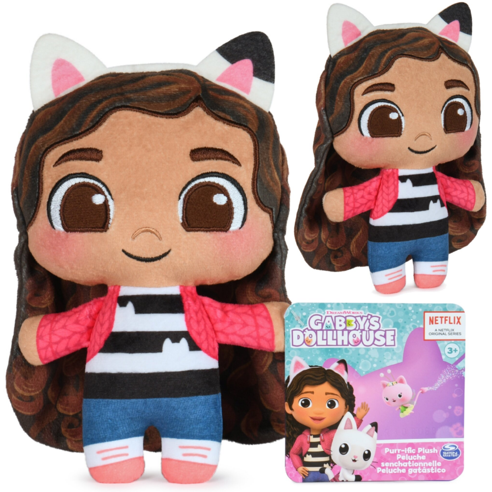 Pluszowa maskotka Gabi od marki Spin Master to wiernie odwzorowana bohaterka uwielbianego serialu Koci Domek Gabi. Radosna i pełna energii dziewczynka zachwyca swoim charakterystycznym wyglądem oraz dbałością o detale, które sprawiają, że wygląda jak żywcem wyjęta z bajki.Gabi ma brązowe włosy i oczy oraz nosi swoją rozpoznawalną opaskę z kocimi uszkami. Ubrana jest w kolorowy strój – jeansy, koszulkę i różową bluzę. Maskotka została wykonana z miękkiego, przyjemnego w dotyku materiału, dzięki czemu idealnie nadaje się do przytulania i codziennej zabawy.