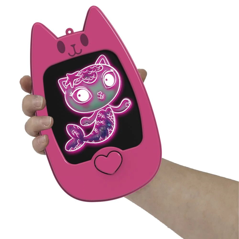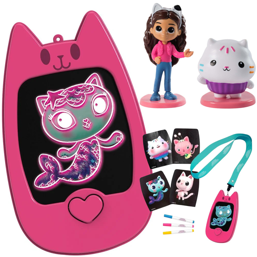 Witamy w domku dla lalek Gabby, gdzie kreatywność Gabby i urocze słodkie koty łączą się, tworząc kolorową magię! Ta innowacyjna zabawka przenosi magię domku dla lalek Gabby prosto w Twoje ręce. Wystarczy odrysować kontur na świecącej tablicy i obserwować, jak świeci żywymi kolorami. Świecąca podkładka jest idealna dla maluchów, które uwielbiają rysować, tworzyć i odkrywać. To nie tylko podkładka do rysowania, to świat nieskończonych możliwości!
