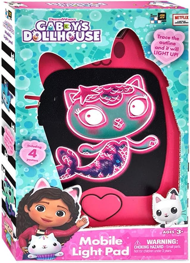 Witamy w domku dla lalek Gabby, gdzie kreatywność Gabby i urocze słodkie koty łączą się, tworząc kolorową magię! Ta innowacyjna zabawka przenosi magię domku dla lalek Gabby prosto w Twoje ręce. Wystarczy odrysować kontur na świecącej tablicy i obserwować, jak świeci żywymi kolorami. Świecąca podkładka jest idealna dla maluchów, które uwielbiają rysować, tworzyć i odkrywać. To nie tylko podkładka do rysowania, to świat nieskończonych możliwości!