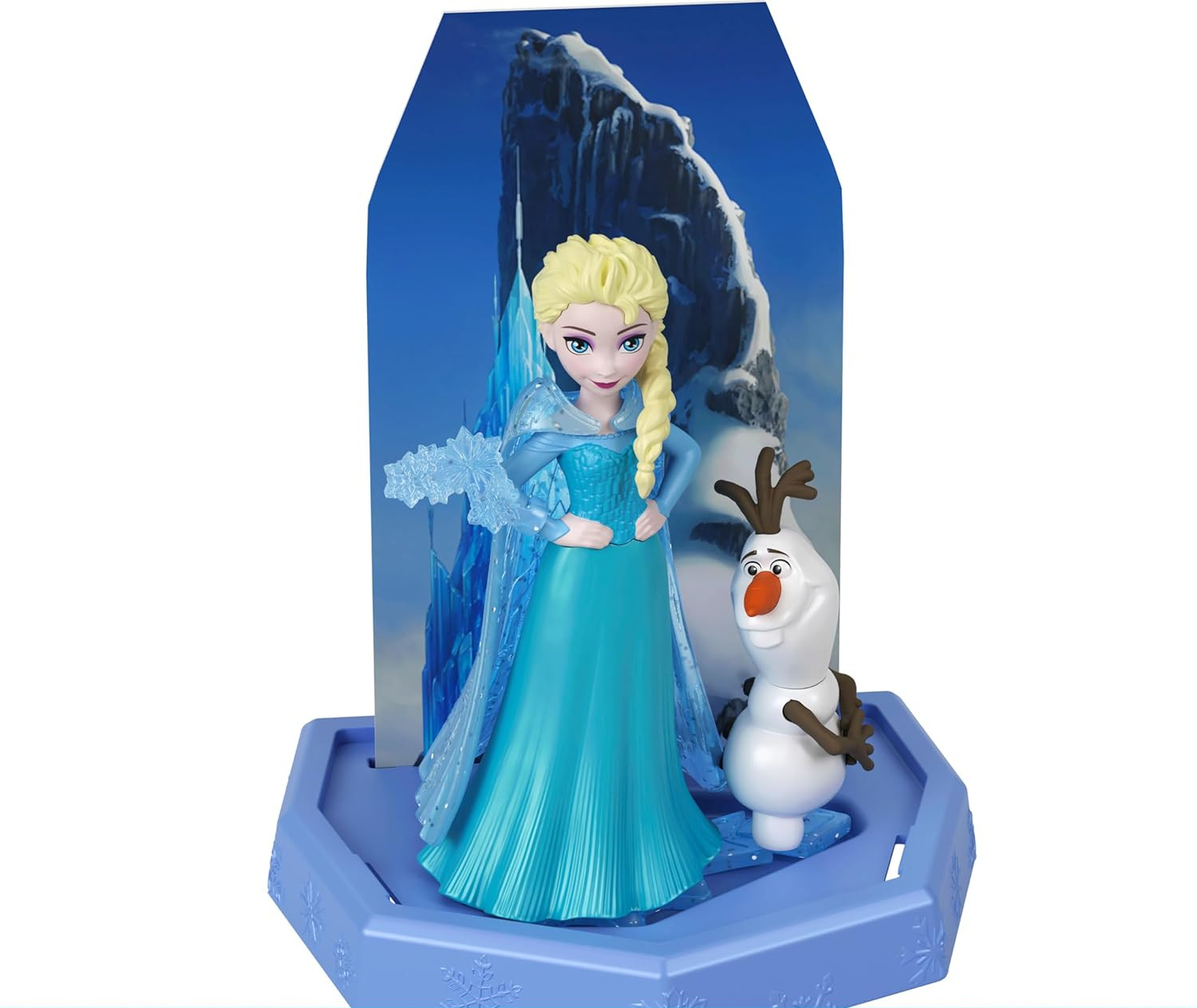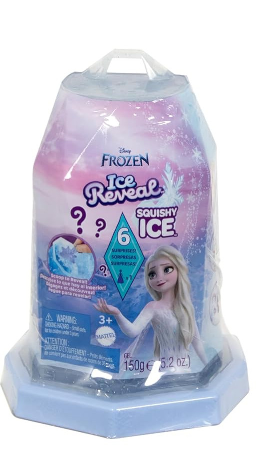 Dzięki lalkom Disney Frozen Ice Reveal rozpakowywanie nabiera wyjątkowego charakteru! Aby odkryć znajdujące się w środku zabawki, dzieci używają łopatki w kształcie płatka śniegu, aby przekopać się przez specjalny lodowy żel. Tajemniczą małą laleczką będzie Anna lub Elsa w charakterystycznym wyglądzie, a także Olaf lub mały Sven. Dodatkowe niespodzianki obejmują pelerynę lub kapelusz, akcesoria tematyczne i dwustronne tło. Aby zabawa była jeszcze ciekawsza, dzieci mogą ustawić lalkę i jej elementy w pojemniku z motywem lodu lub je w nim przechowywać.