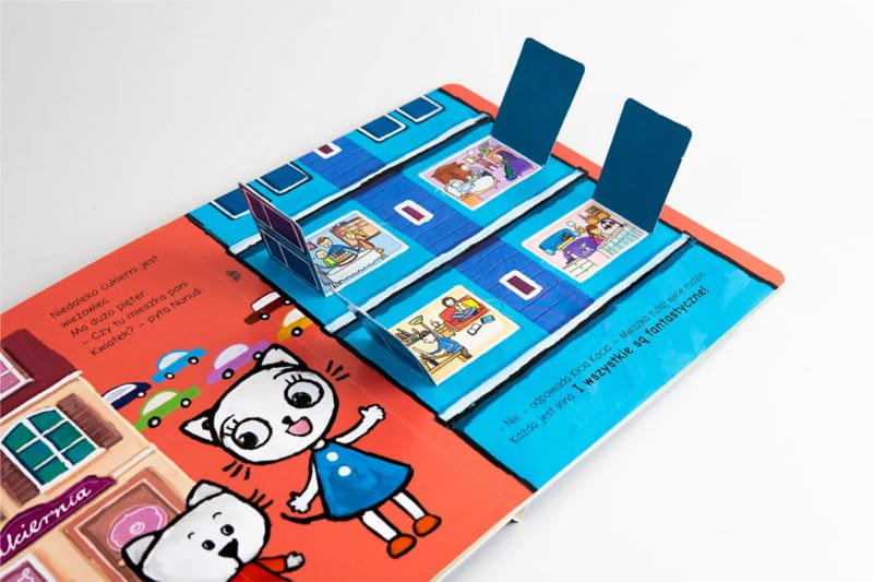 Sympatyczna kotka i jej młodszy brat wybierają się w odwiedziny do państwa Kwiatków. Po drodze mijają wiele domów. W każdym z nich mieszka jakaś rodzina, a każda jest inna. Rodziny się od siebie różnią, ale wszystkie są fajne. Kicia Kocia i Nunuś muszą otworzyć wiele okienek, żeby je poznać! Mają do otwarcia aż 41 okienek!