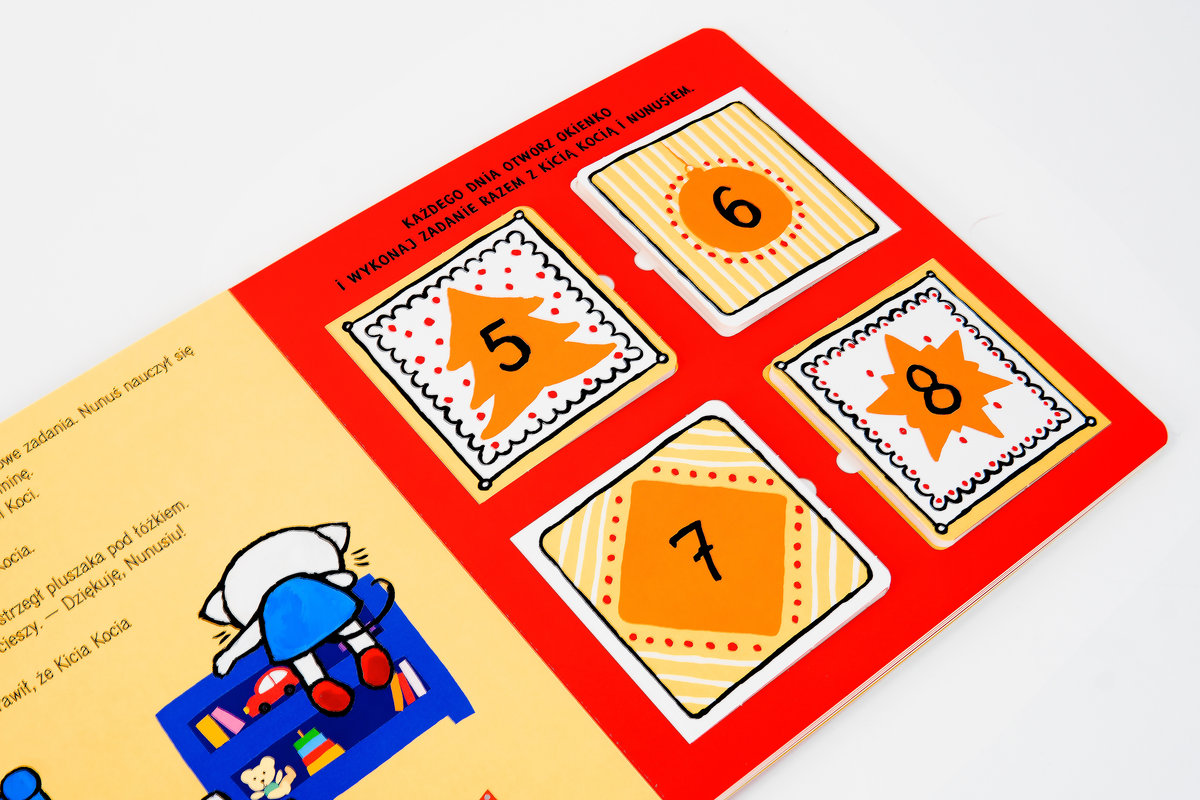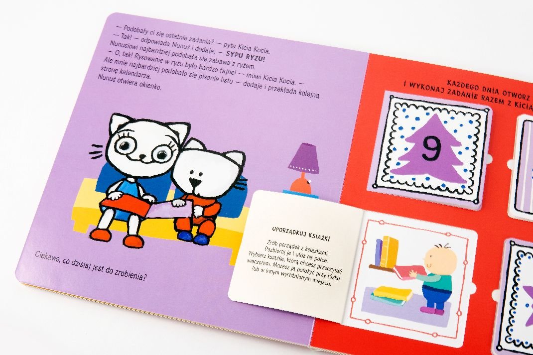 Nunuś już nie może się doczekać Gwiazdki. Razem z Kicią Kocią otwierają po kolei okienka kalendarza adwentowego – na każdy dzień przeznaczone jest jedno okienko i jedno zadanie. Dzięki temu czas biegnie szybciej! Gdy otworzą 24 okienka, nadejdzie Boże Narodzenie.